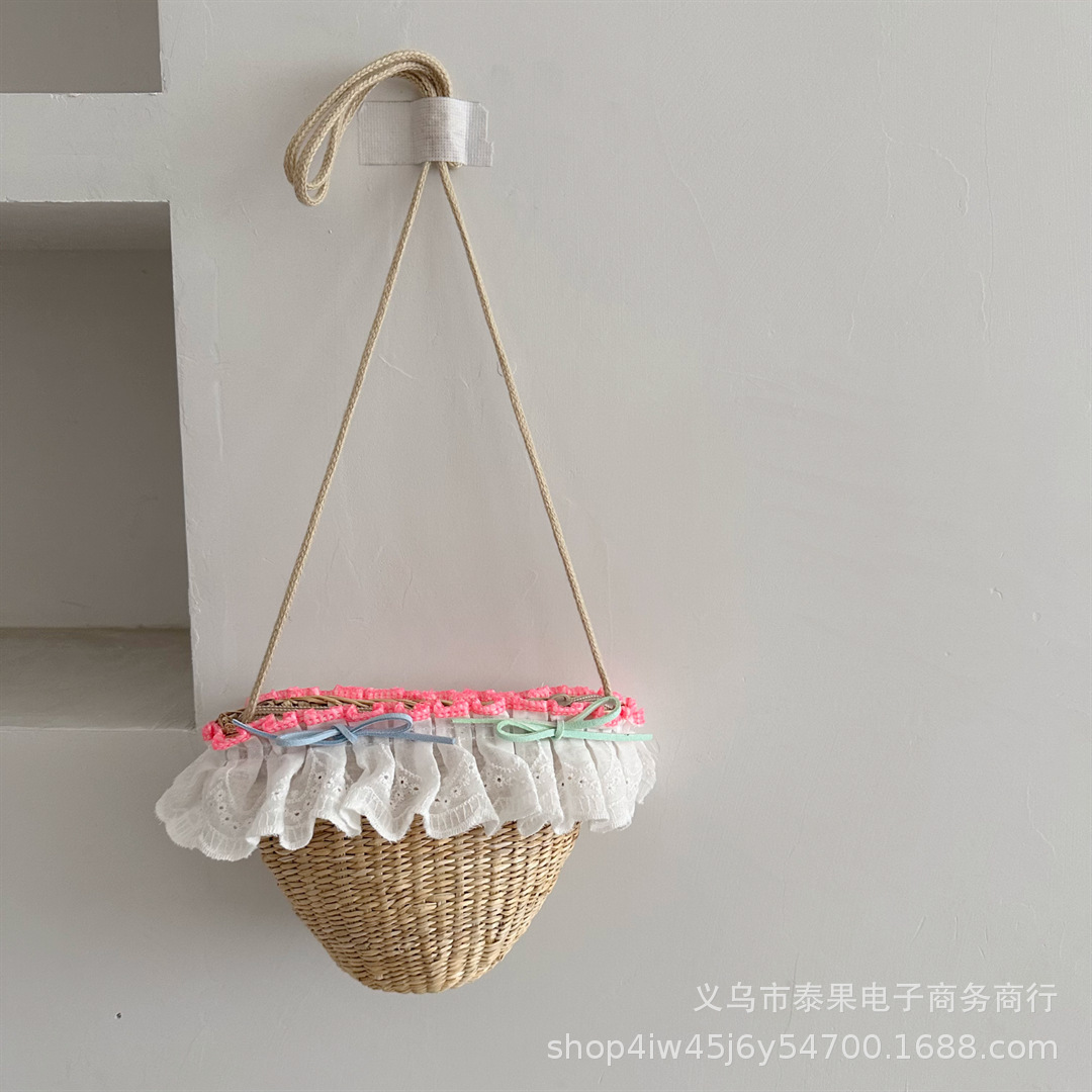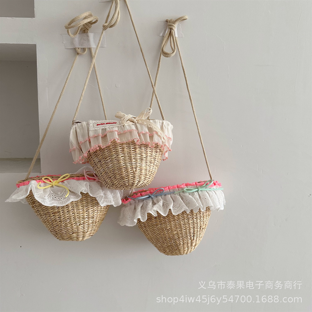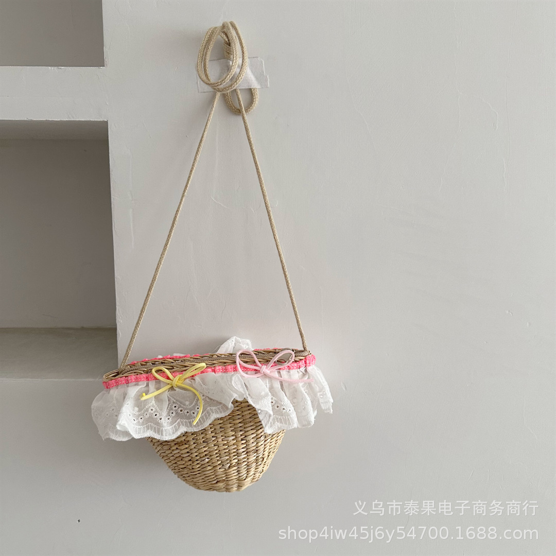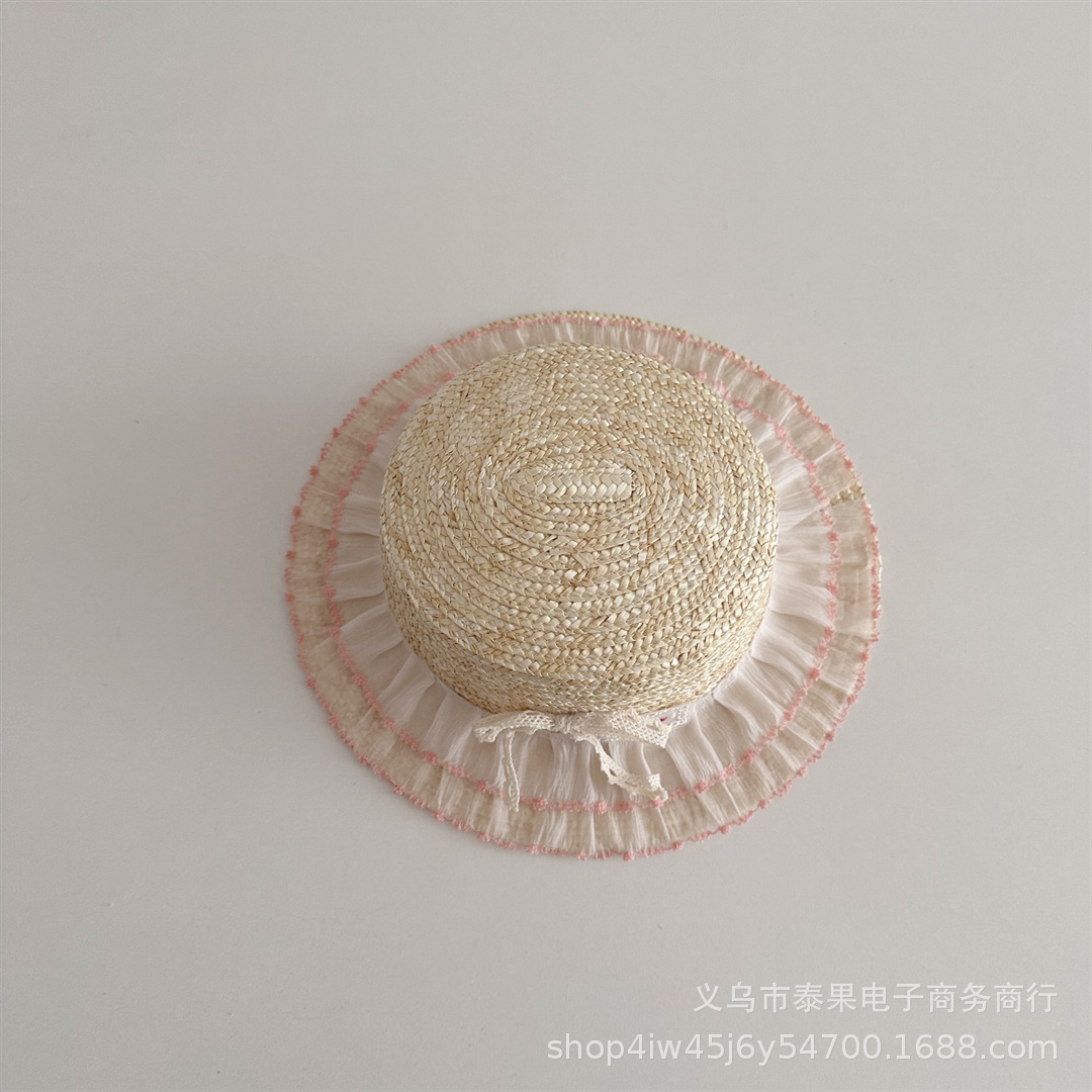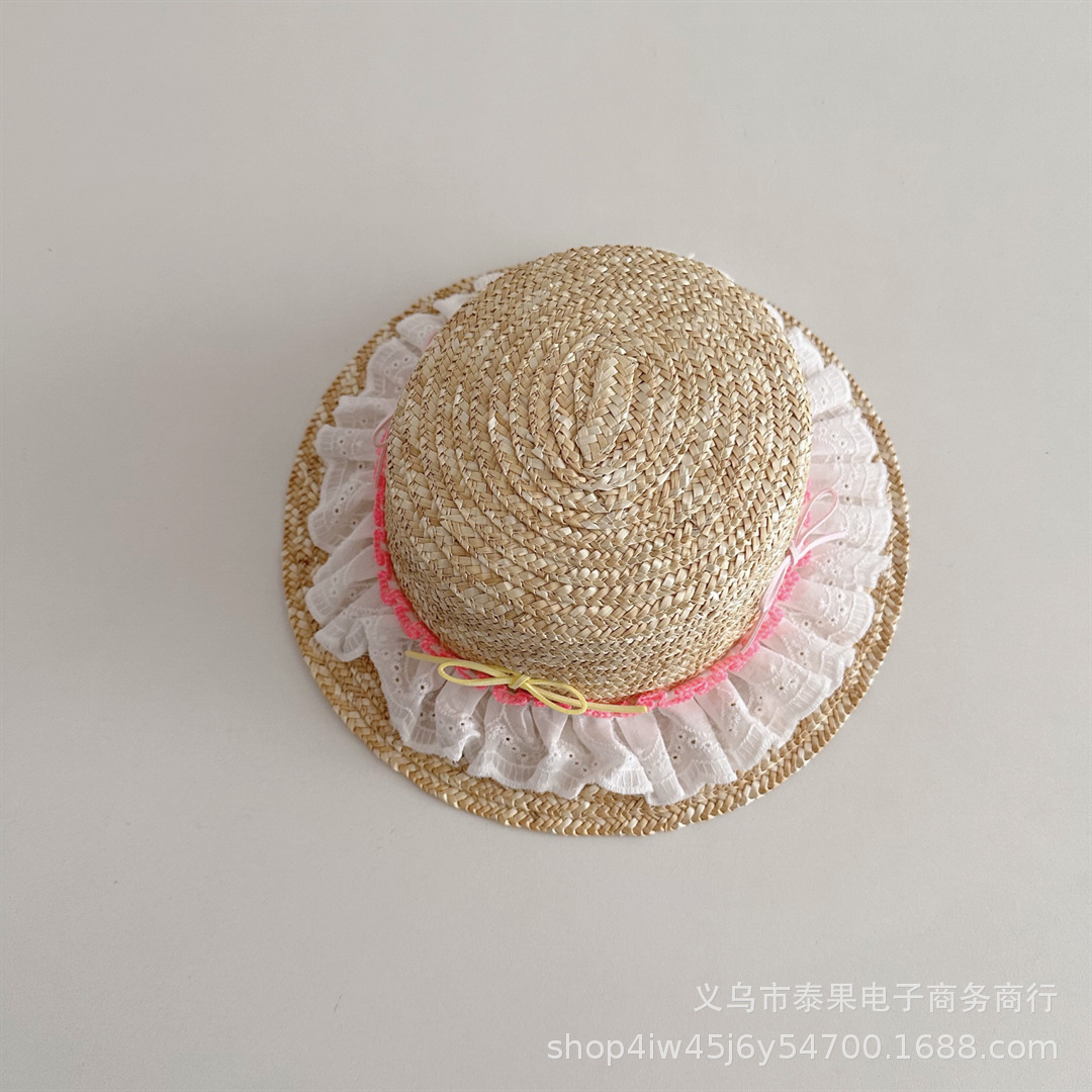 어린이 밀짚 모자 여름 플랫 탑 차양 모자 베이비 비치 모자 걸스 서양식 선 스크린 모자 미니 동전 지갑