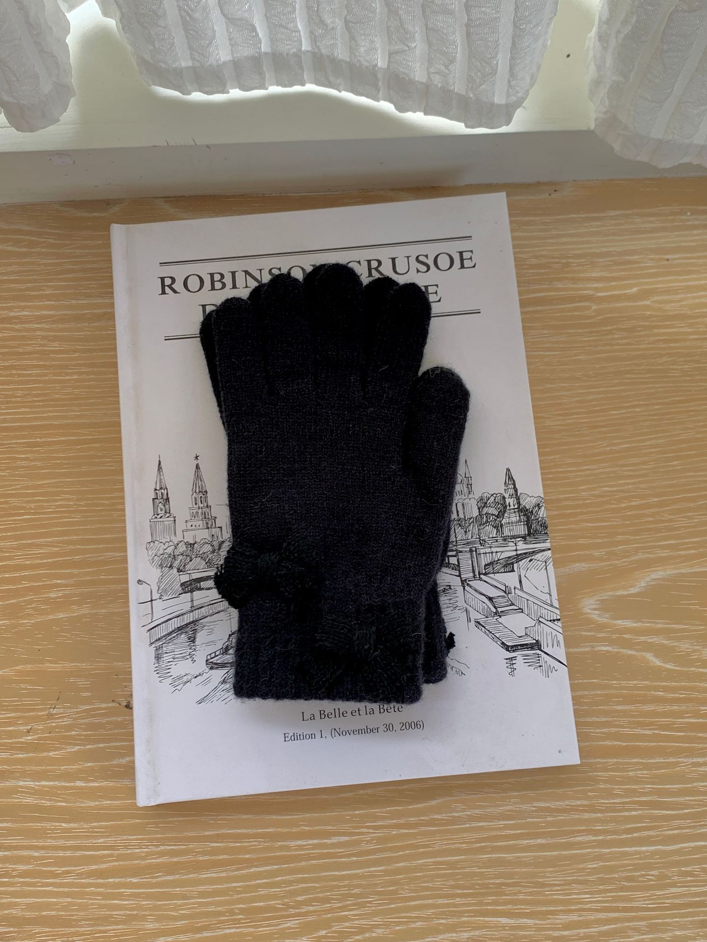 2024 가을 겨울 따뜻하고 방한성을 유지하는 여성용 한국식 리본 핑거리스 터치 스크린 니트 울 다섯 손가락 장갑