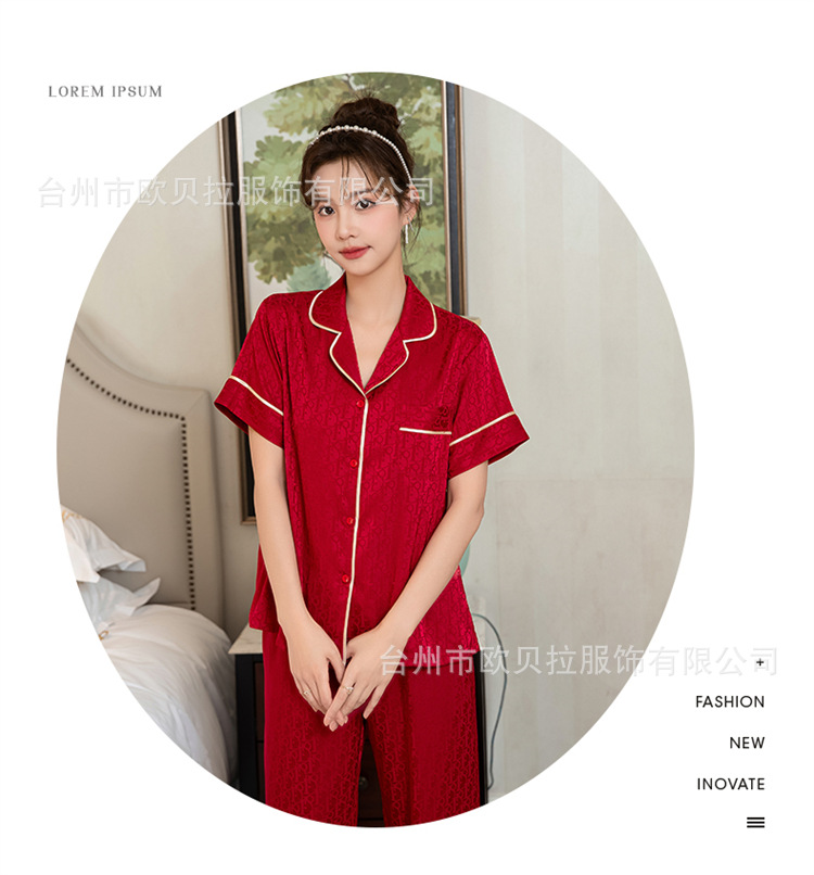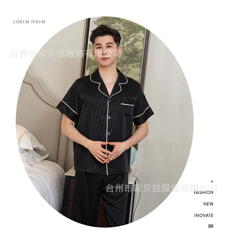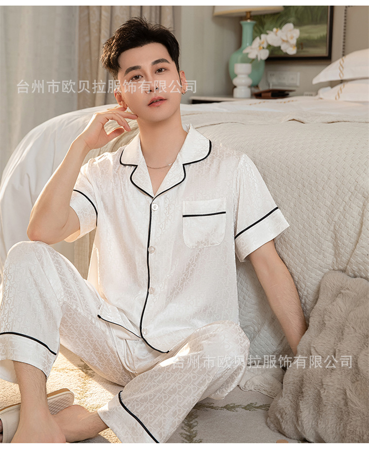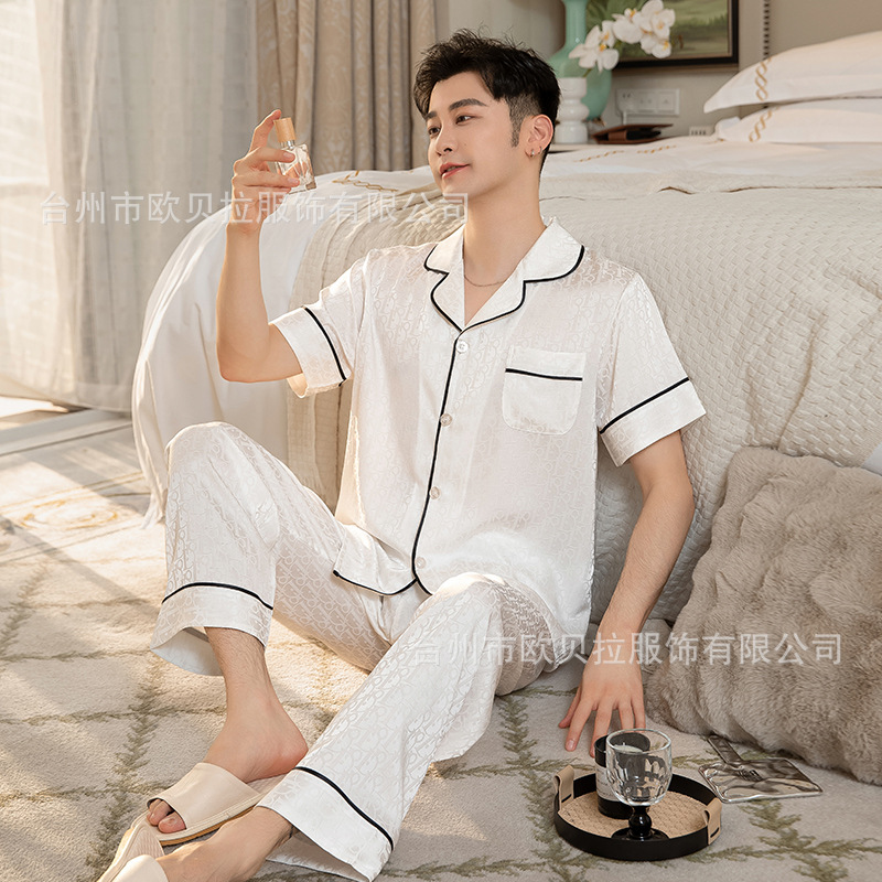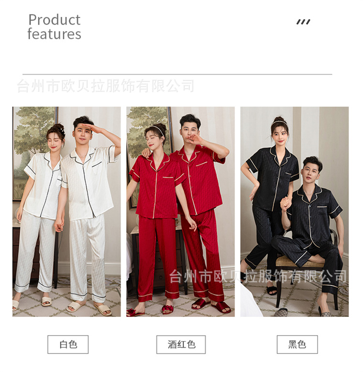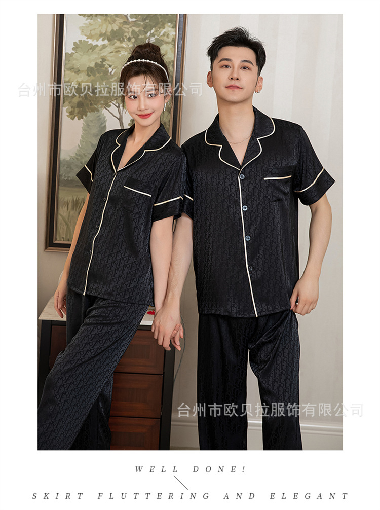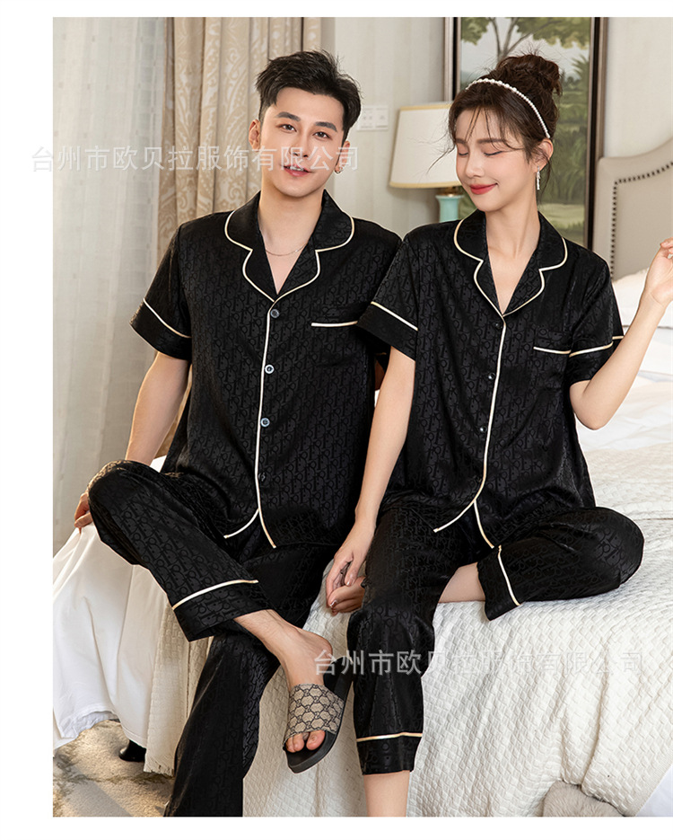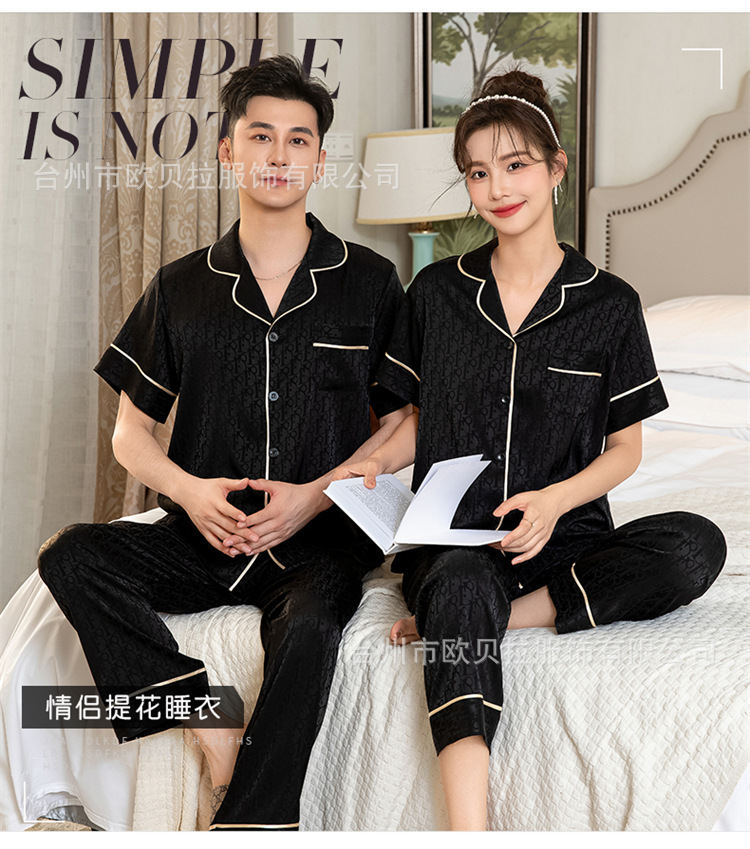 아이스 실크 커플 잠옷 여성 여름 얇은 반팔 바지 자카드 세트 한국식 플러스 사이즈 아이스 실크 홈 옷