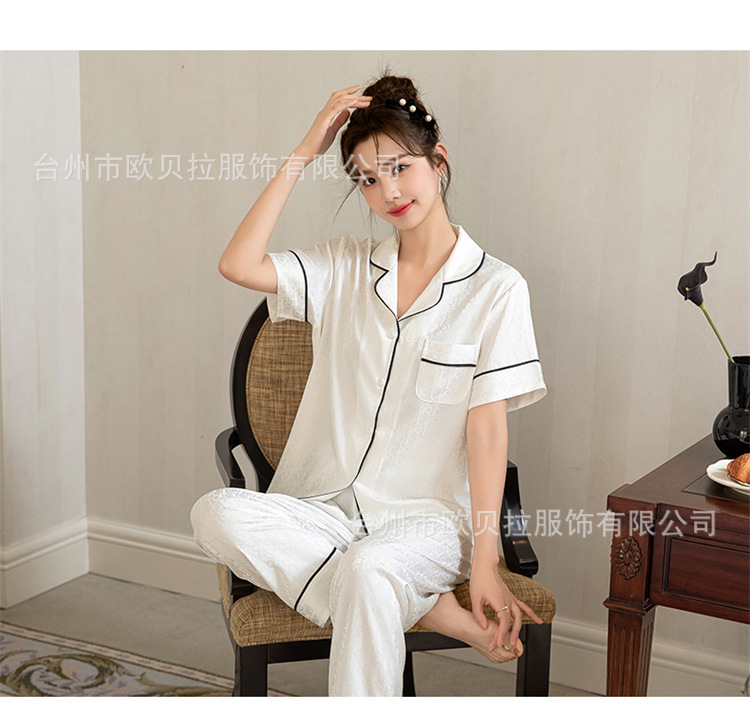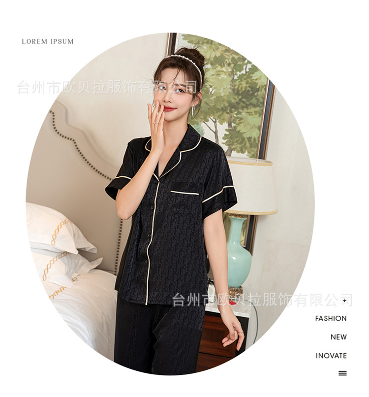 아이스 실크 커플 잠옷 여성 여름 얇은 반팔 바지 자카드 세트 한국식 플러스 사이즈 아이스 실크 홈 옷스토어 가기