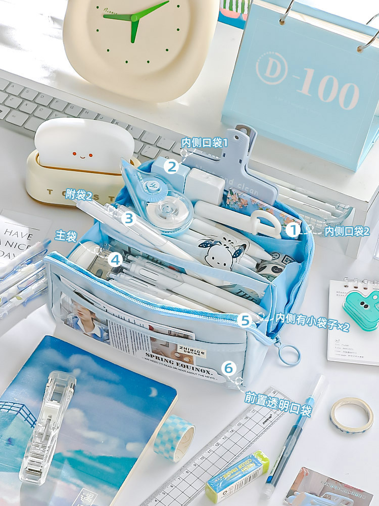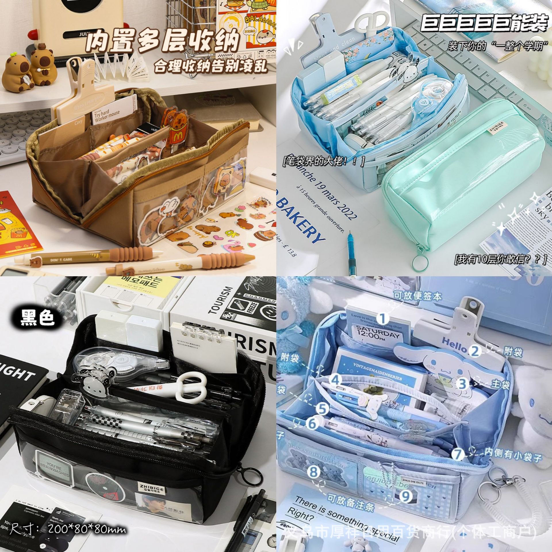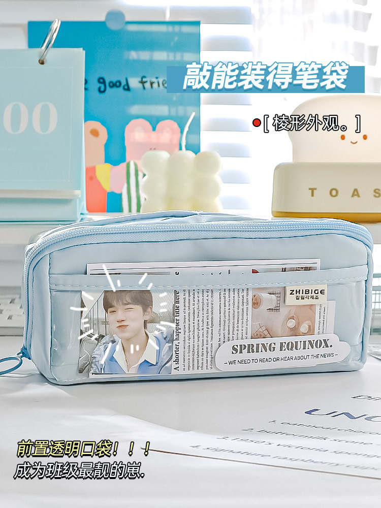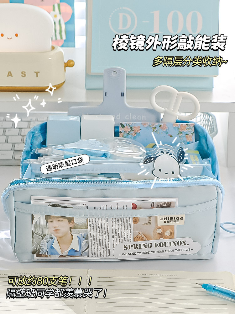 10 층 프리즘 연필 케이스 캔버스 체크 무늬 국경 대용량 중학생 소년 소녀 간단한 연필 케이스 도매스토어 가기