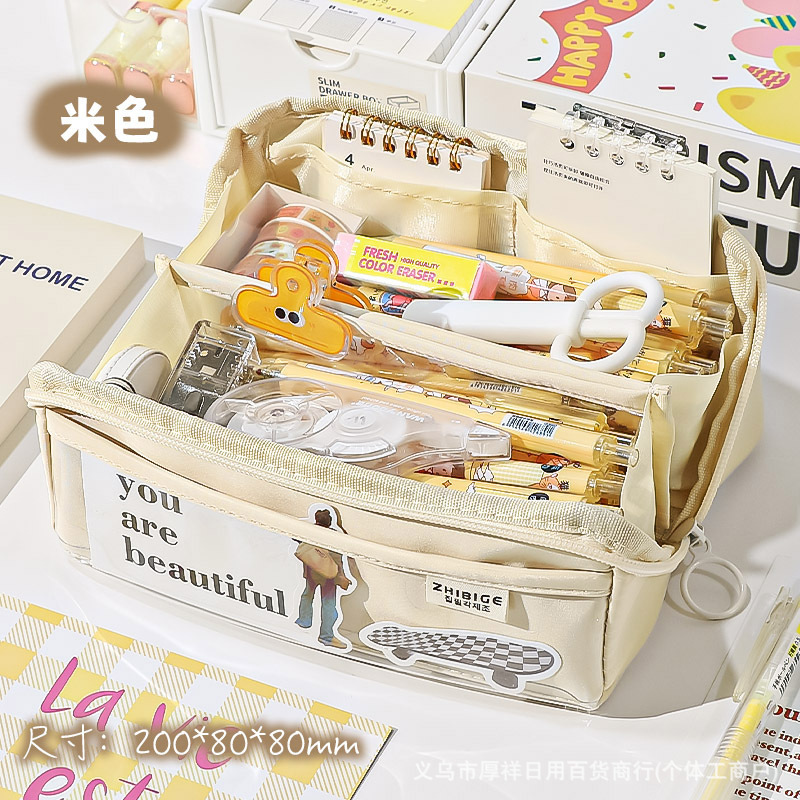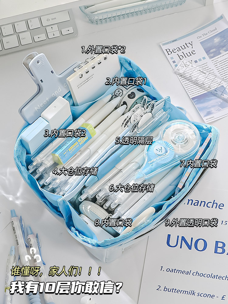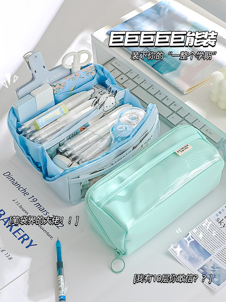 10 층 프리즘 연필 케이스 캔버스 체크 무늬 국경 대용량 중학생 소년 소녀 간단한 연필 케이스 도매