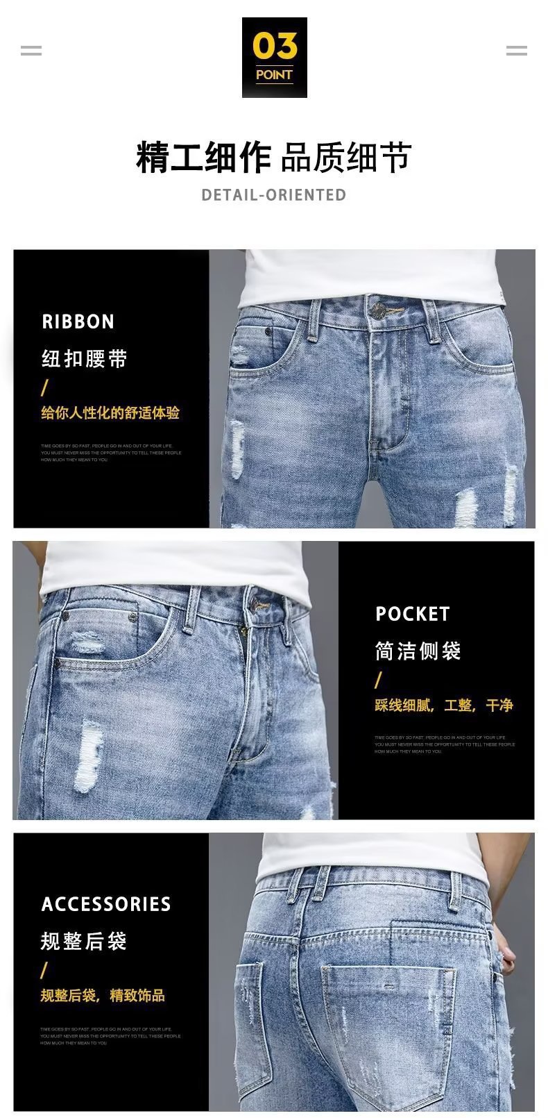 공장 제품 여름 신작 찢어진 9부 청바지 남성 슬림핏 캐주얼 베이비보이 트렌디 팬츠 봄, 가을 스타일