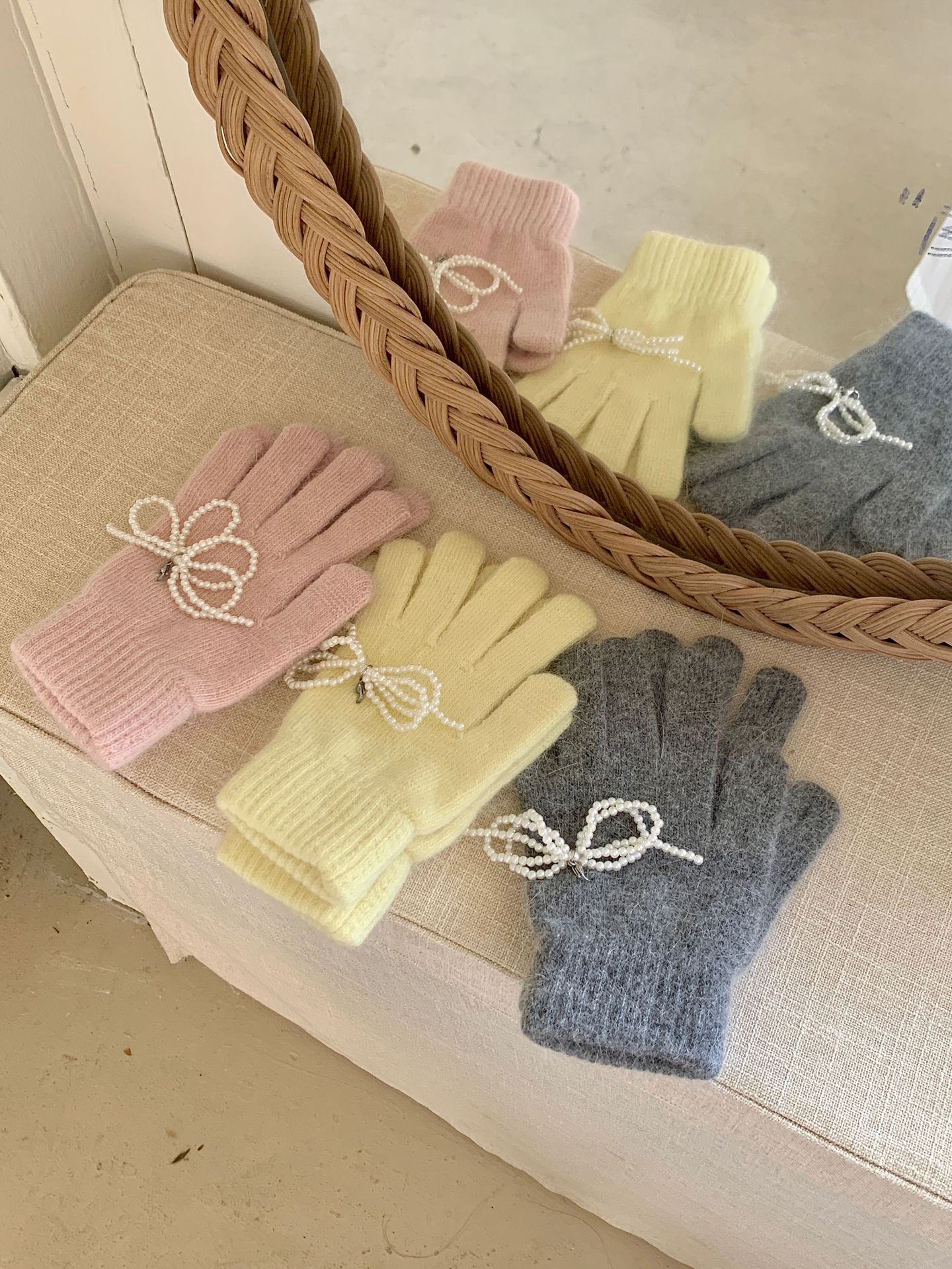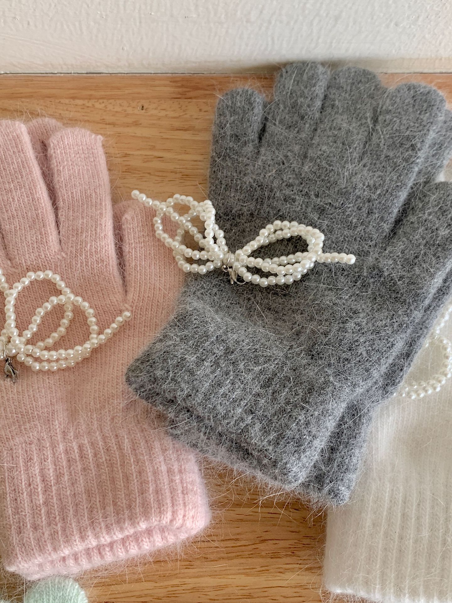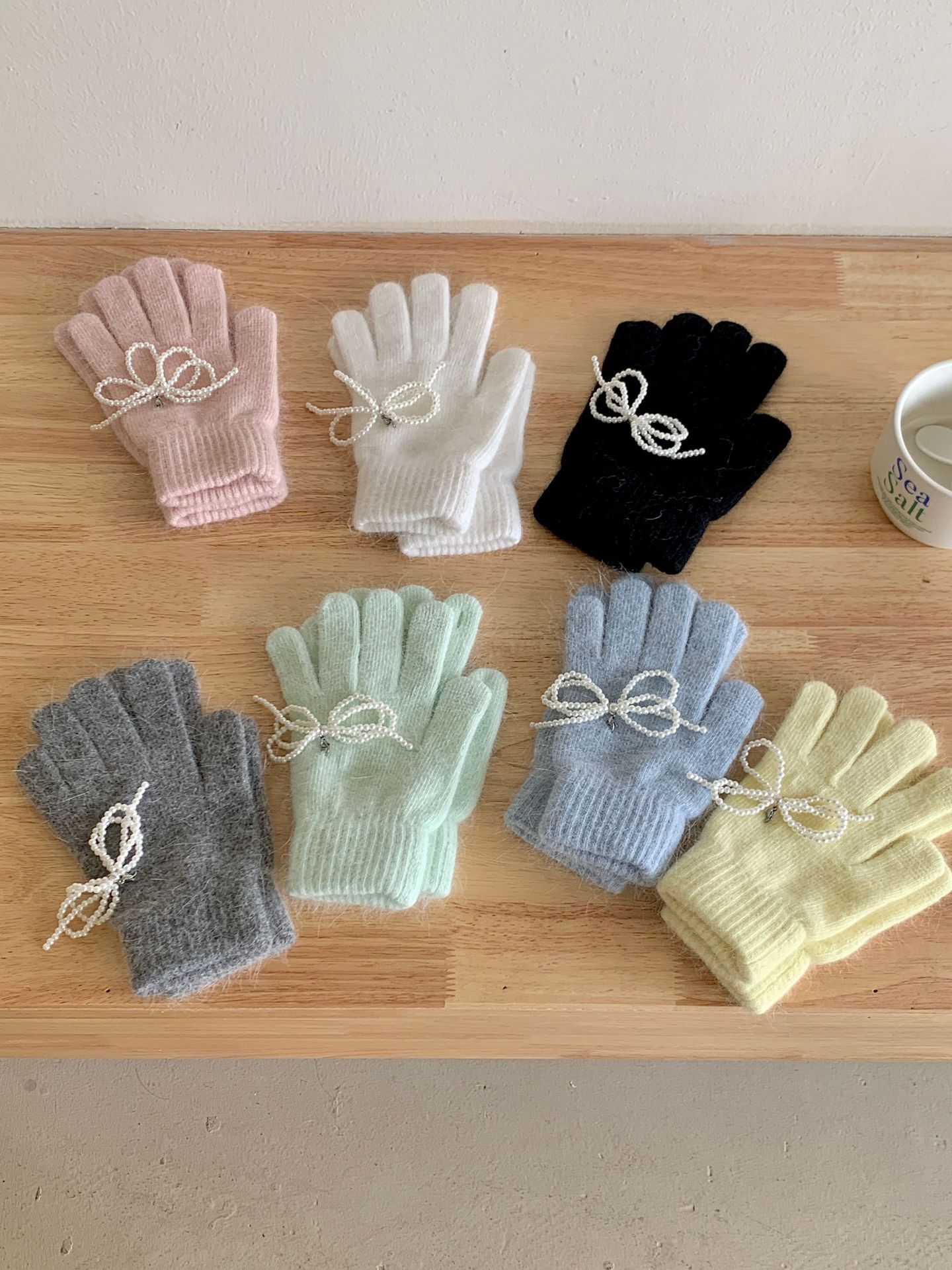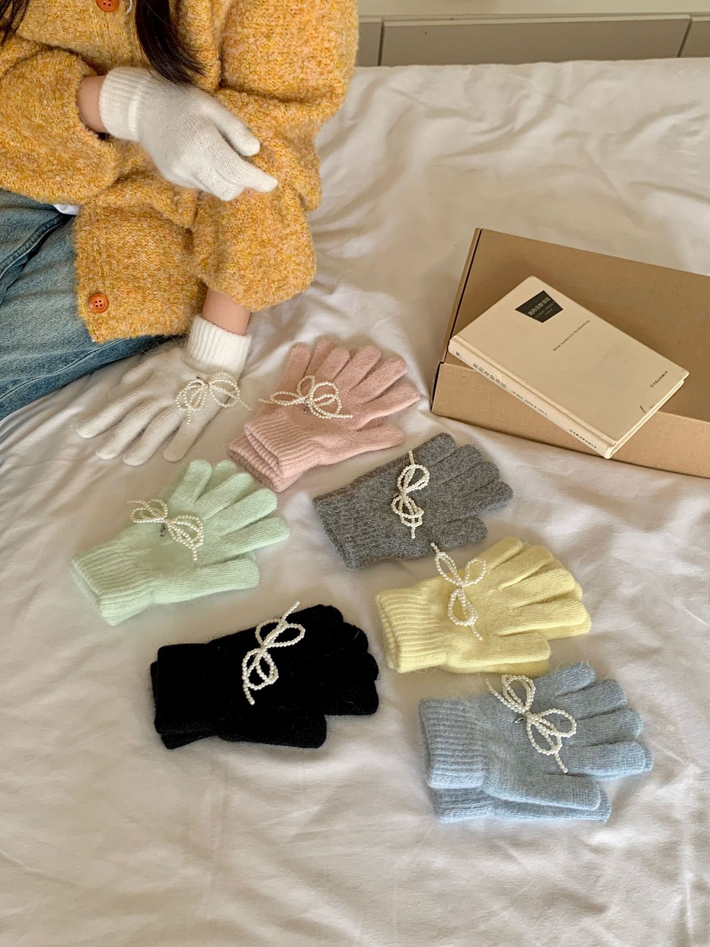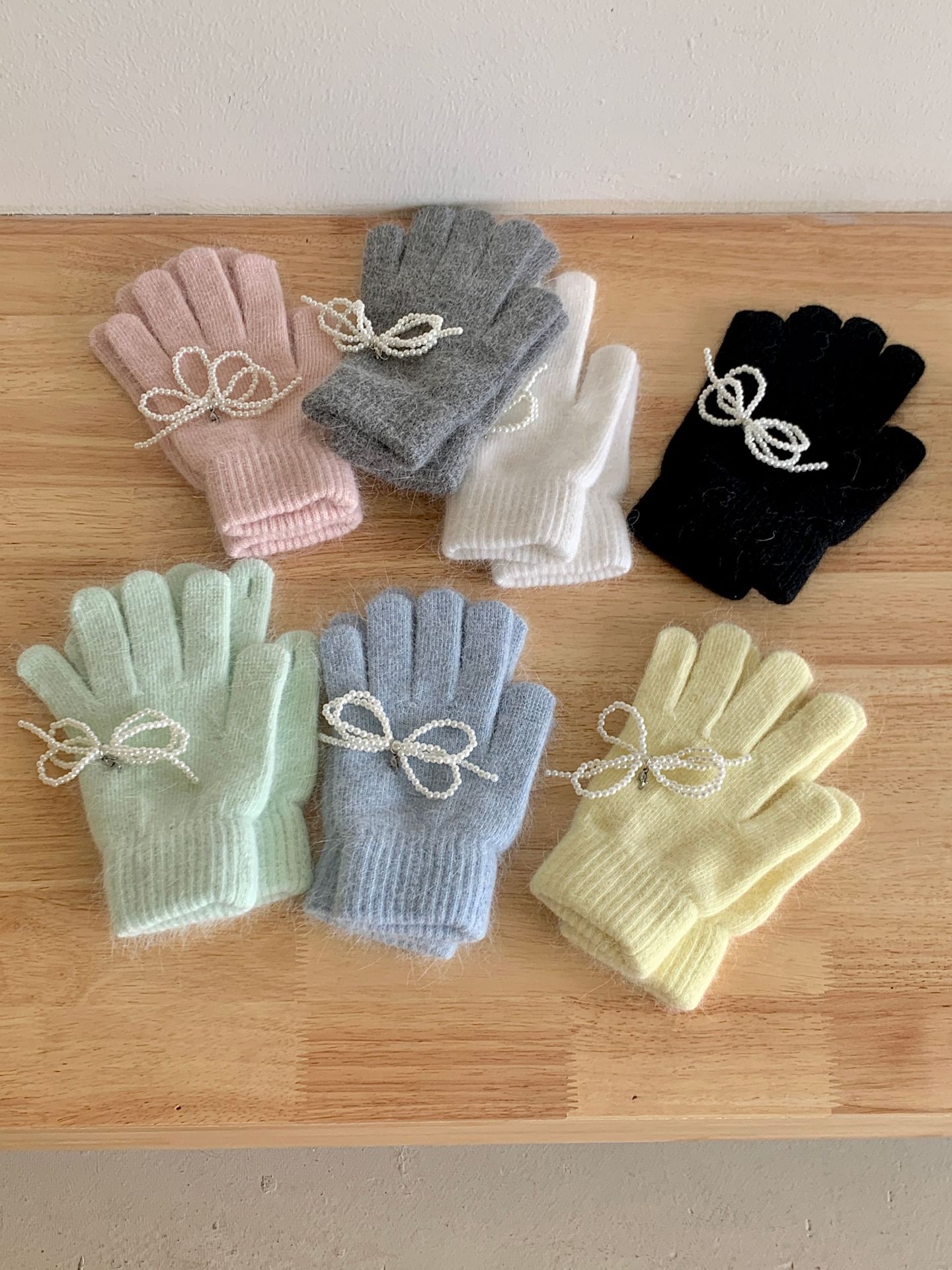 여학생을 위한 토끼털 니트 리본 장갑, 귀여운 한국식 가을 겨울 사이클링 따뜻한 손가락 노출 터치 스크린 트렌드스토어 가기
