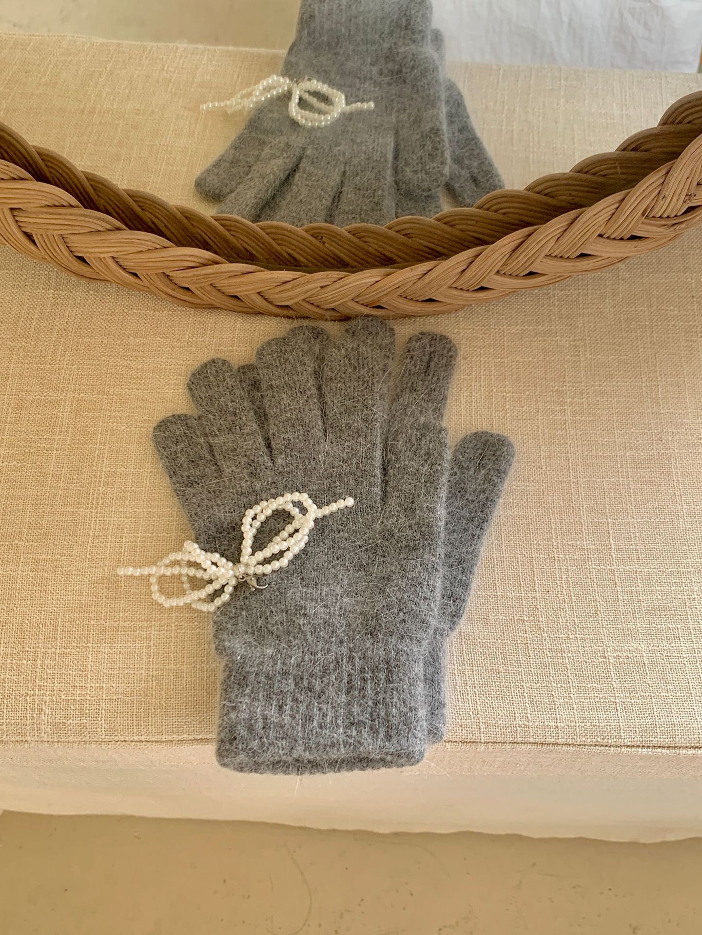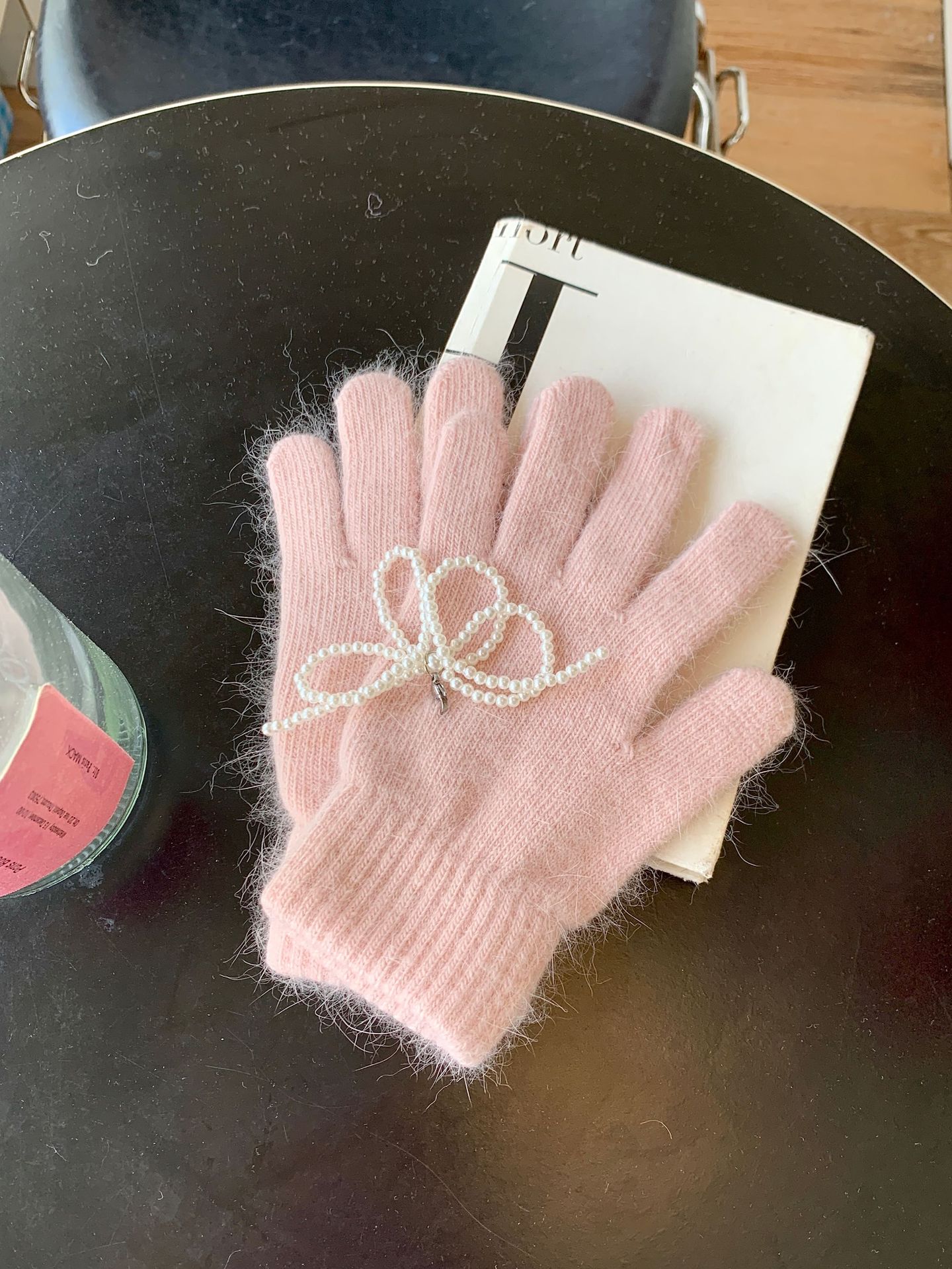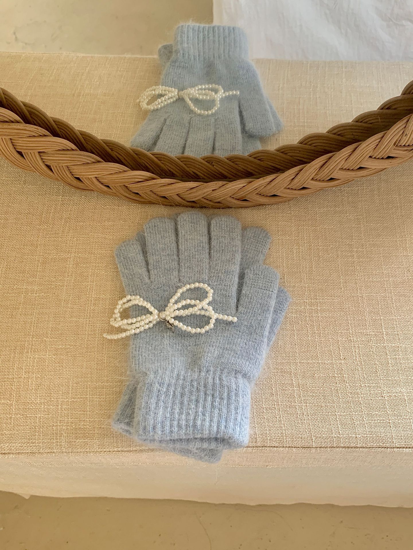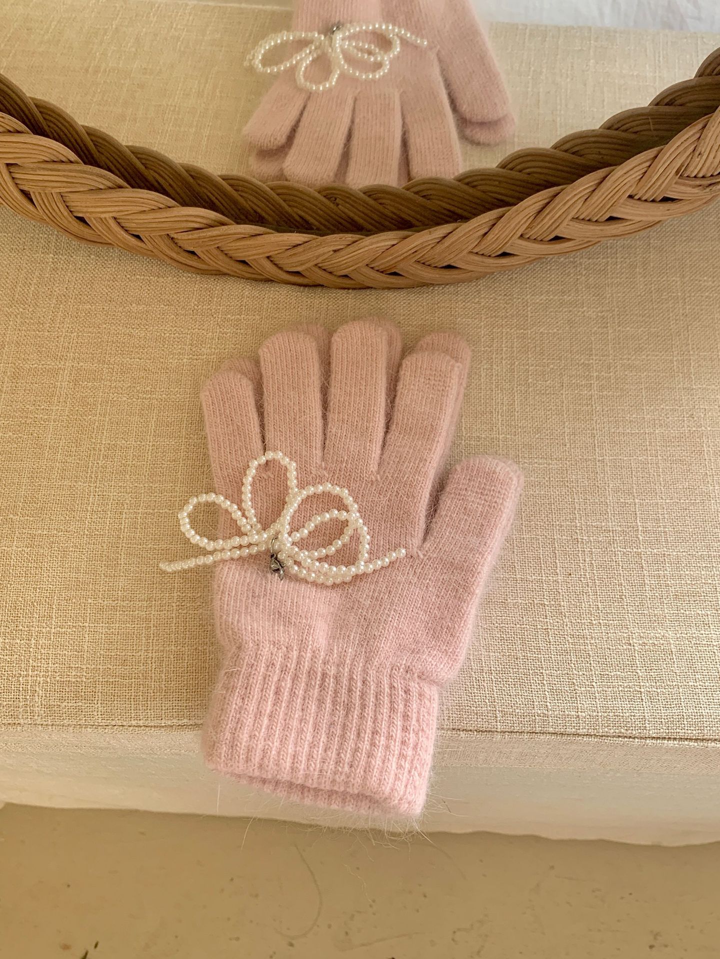 여학생을 위한 토끼털 니트 리본 장갑, 귀여운 한국식 가을 겨울 사이클링 따뜻한 손가락 노출 터치 스크린 트렌드스토어 가기