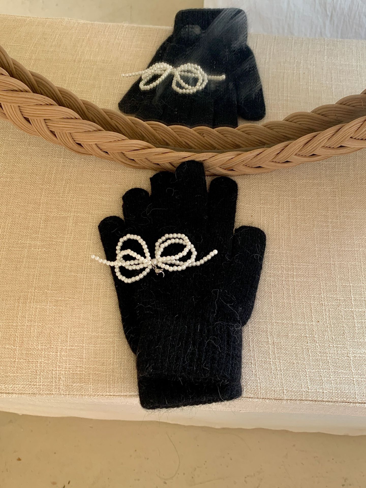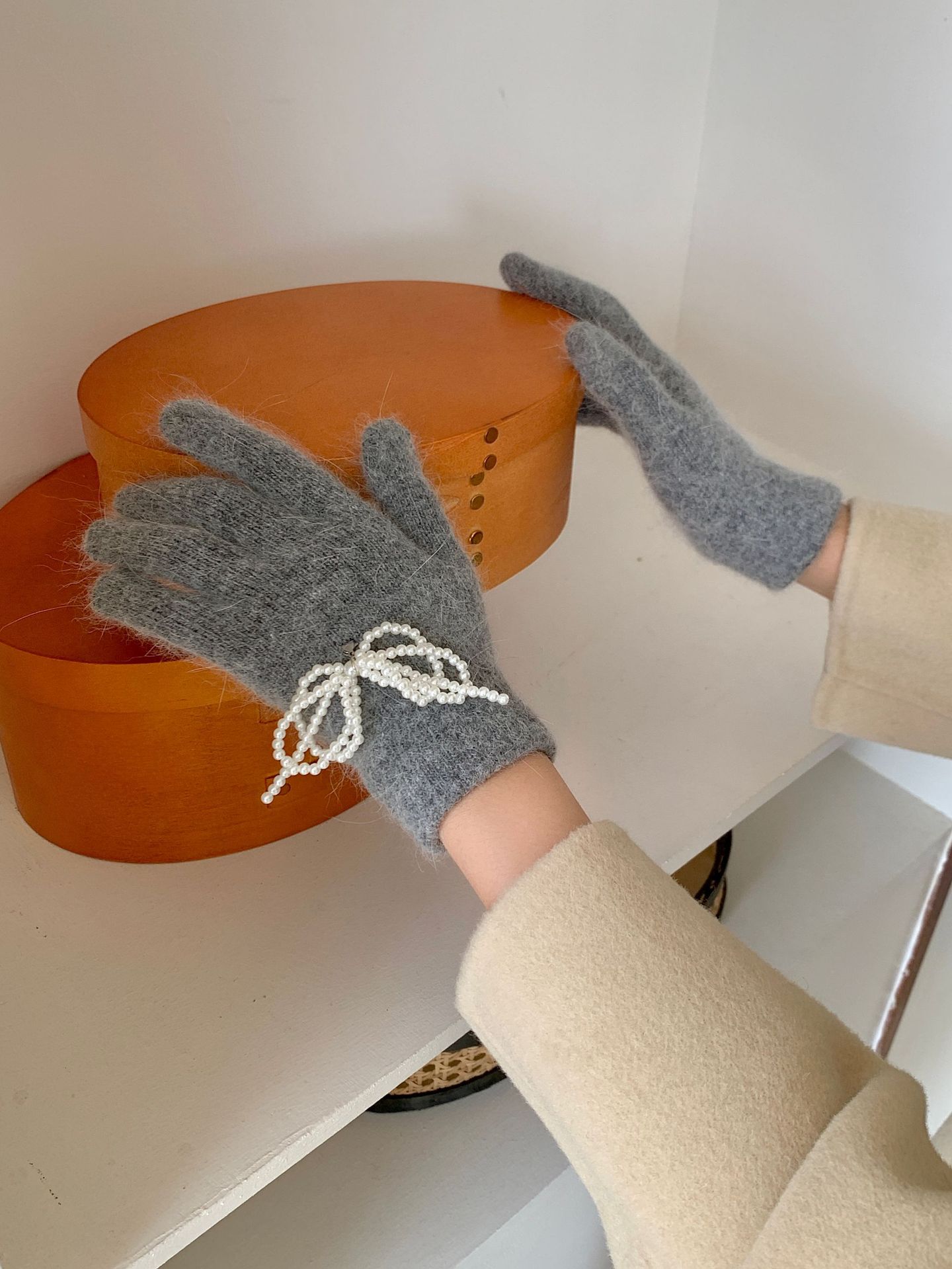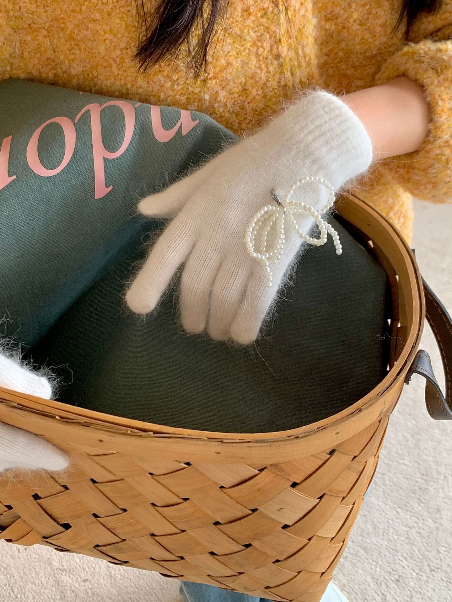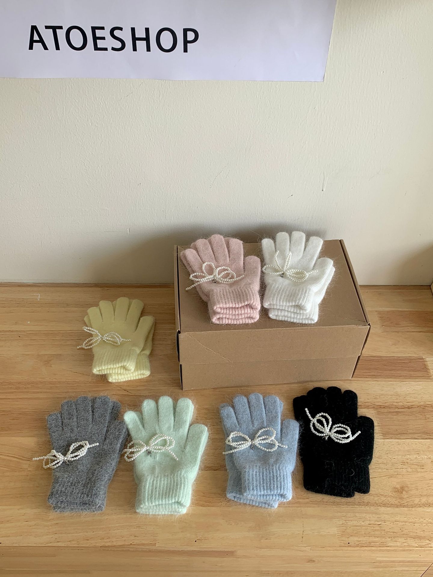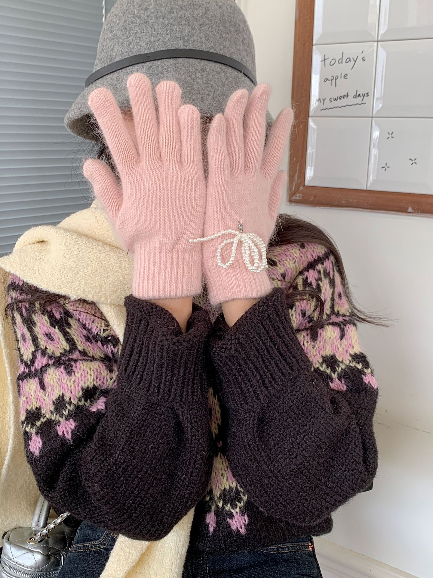 여학생을 위한 토끼털 니트 리본 장갑, 귀여운 한국식 가을 겨울 사이클링 따뜻한 손가락 노출 터치 스크린 트렌드스토어 가기
