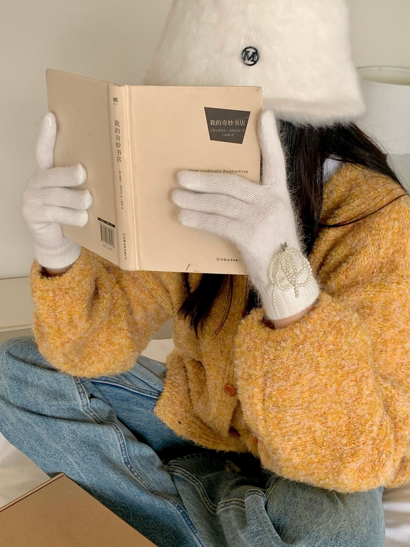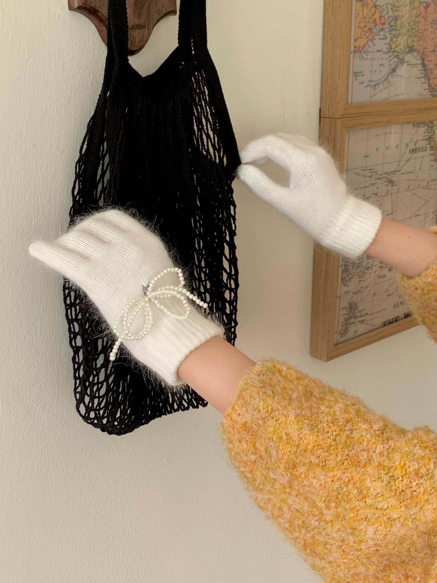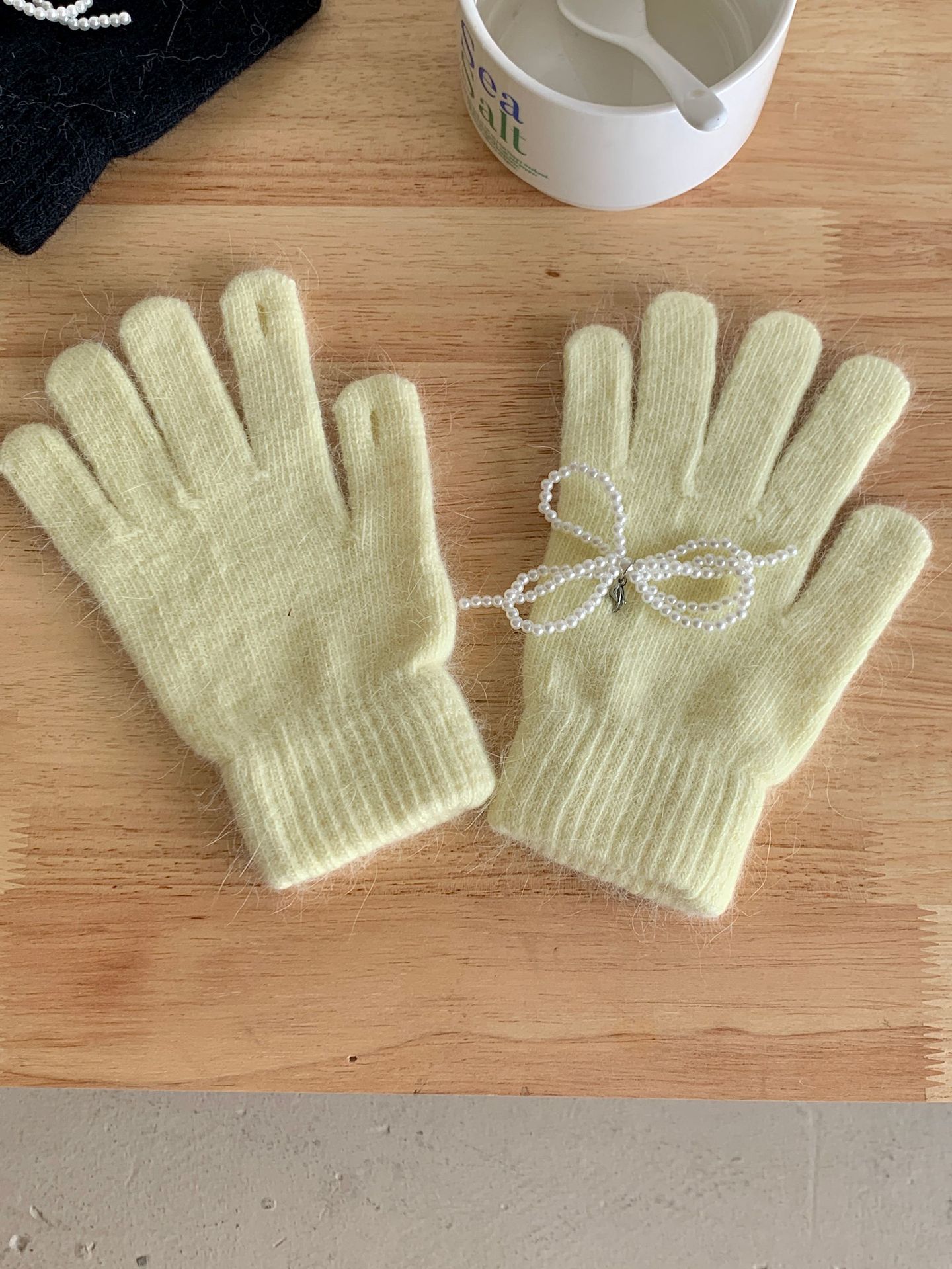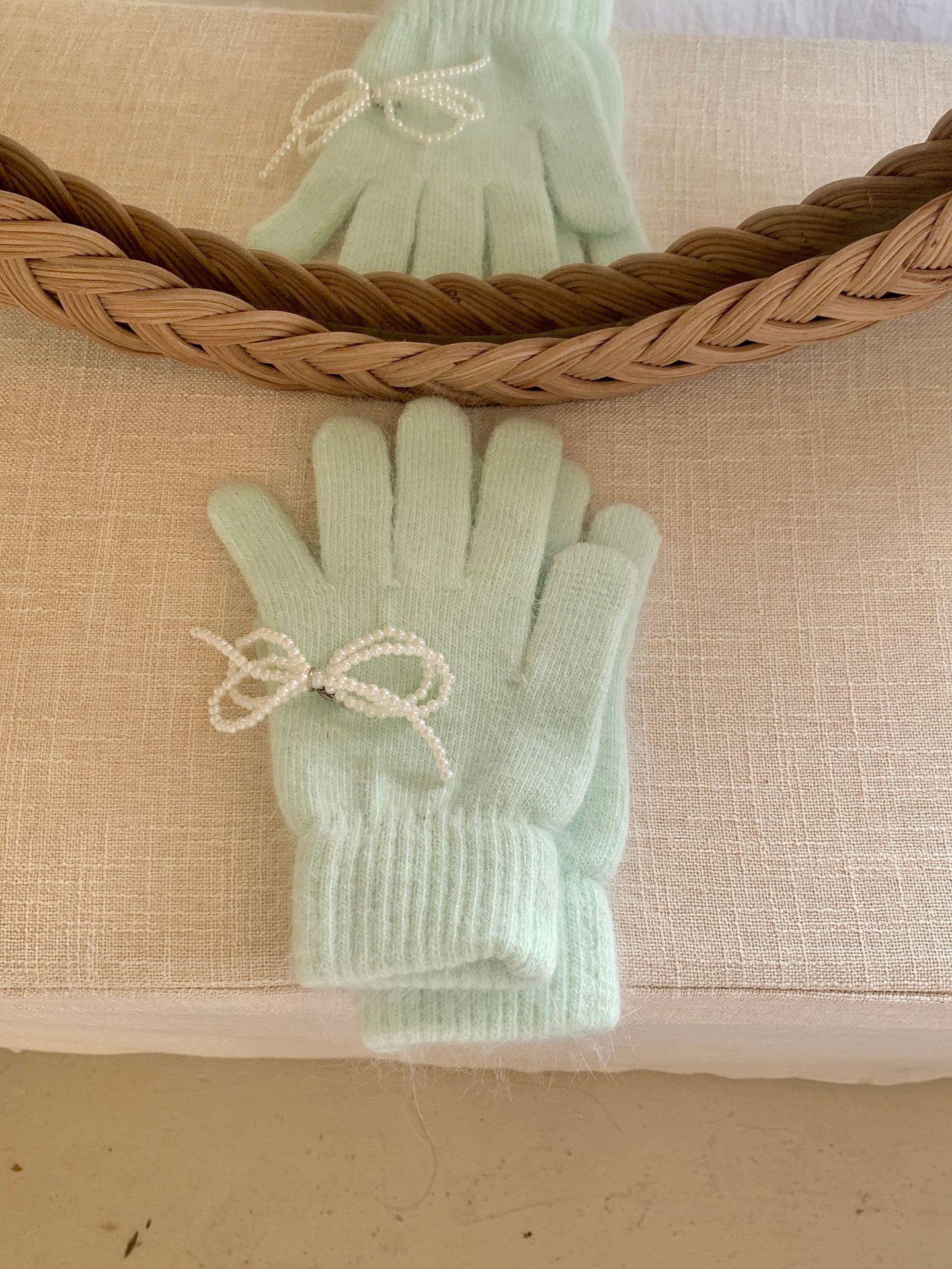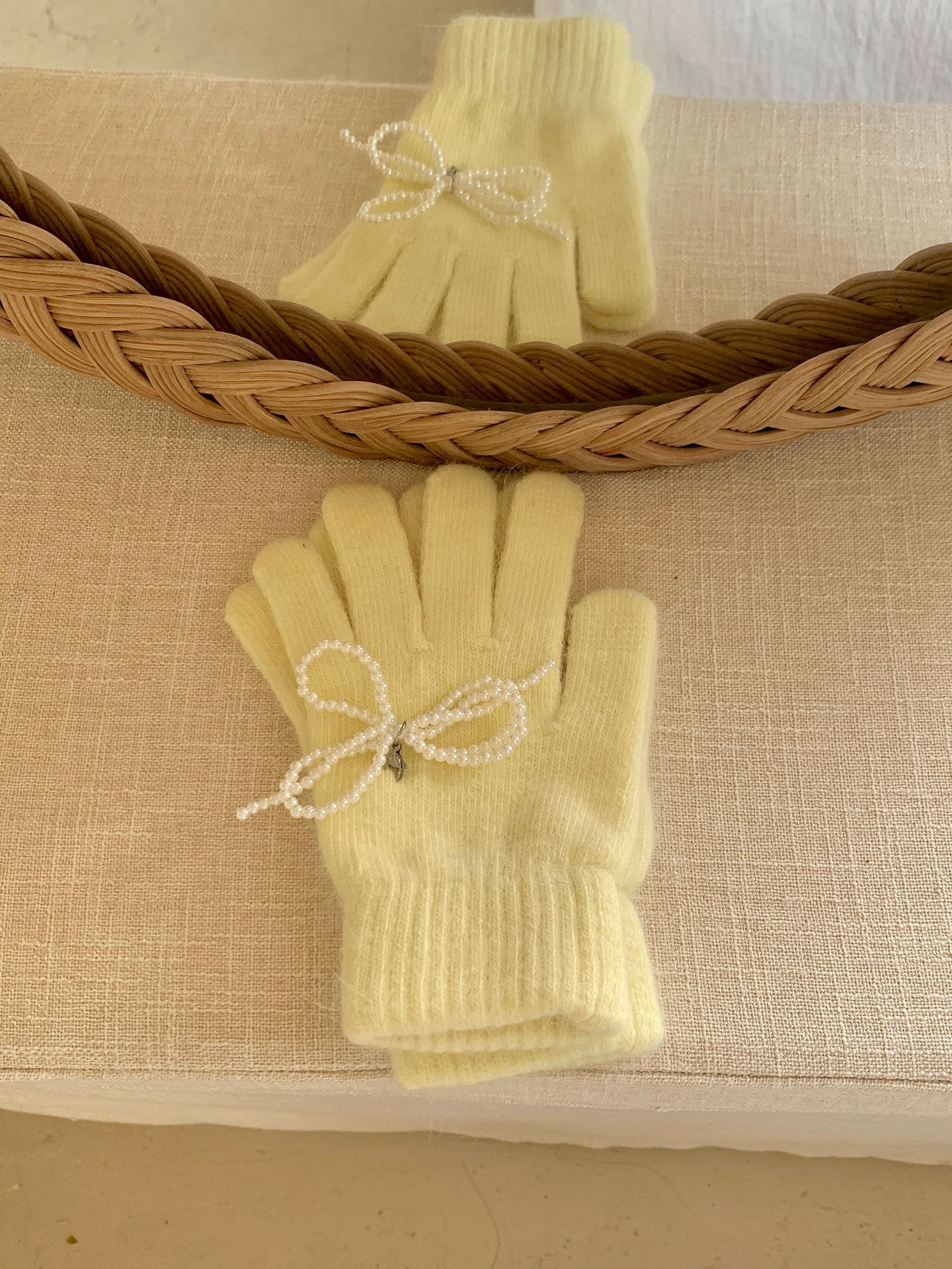 여학생을 위한 토끼털 니트 리본 장갑, 귀여운 한국식 가을 겨울 사이클링 따뜻한 손가락 노출 터치 스크린 트렌드스토어 가기