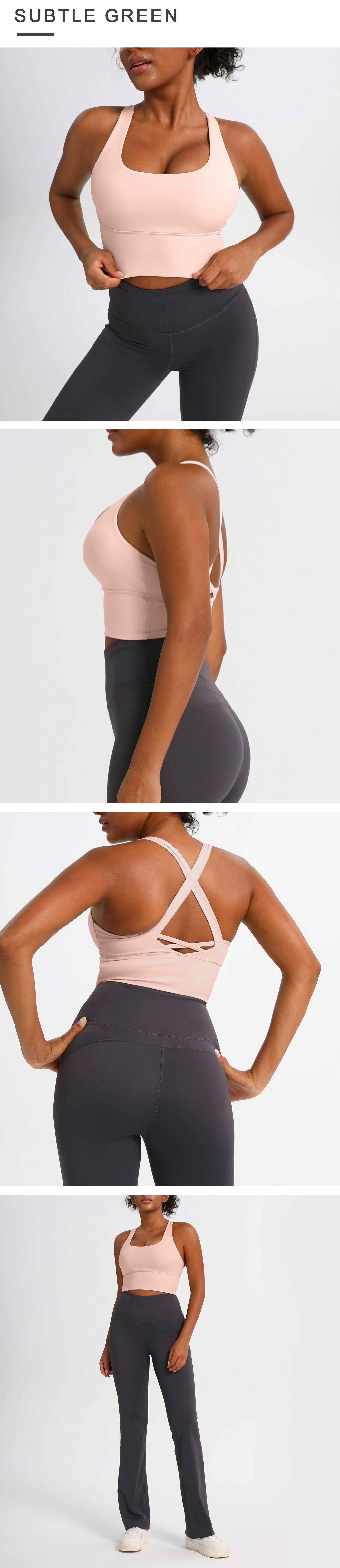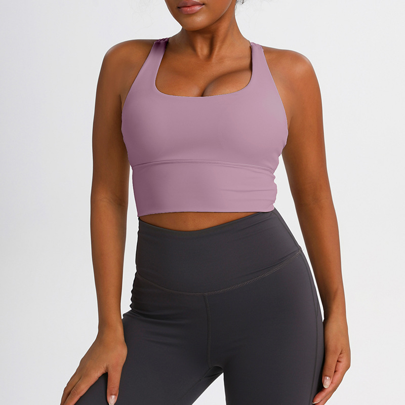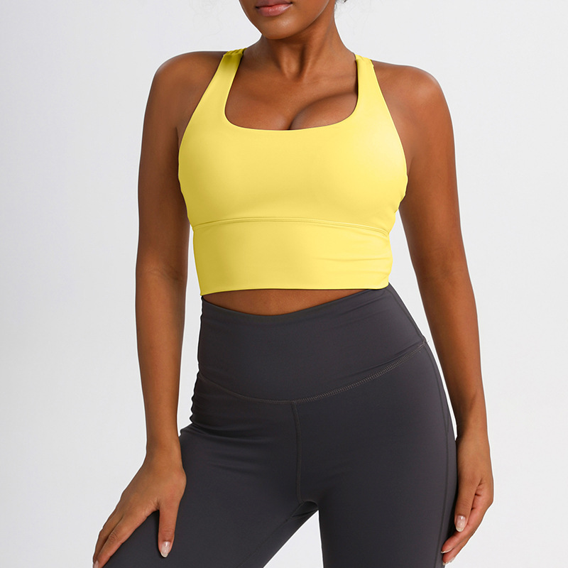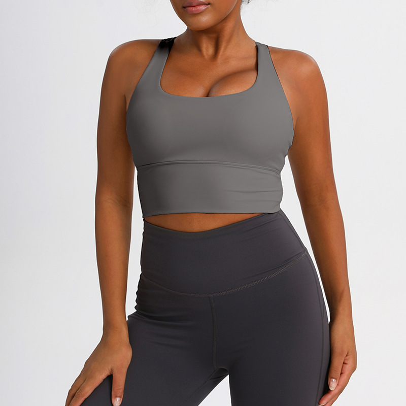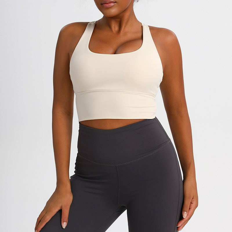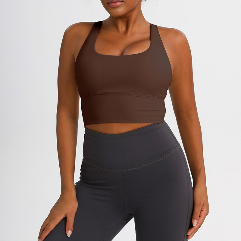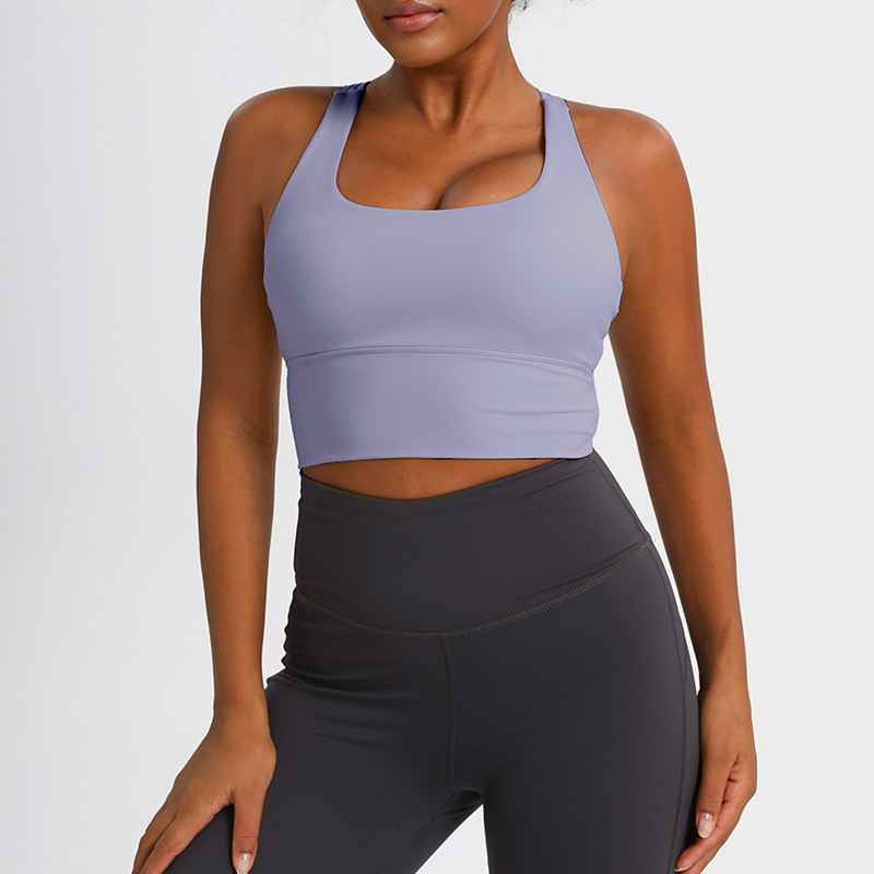 유럽과 미국의 크로스백 스포츠 브라, 누드 요가 조끼, 여성 피트니스 요가복 상의, 충격 흡수 스포츠 브라