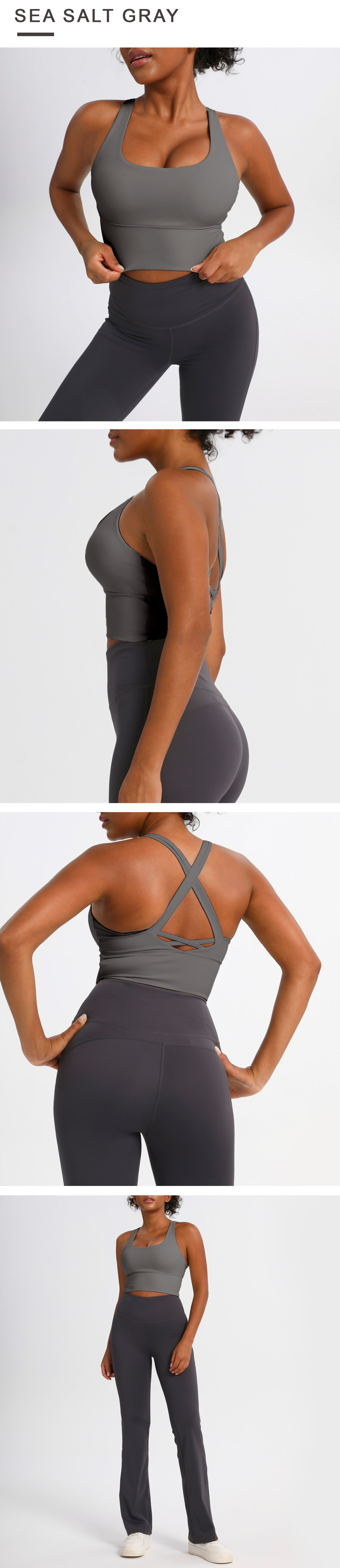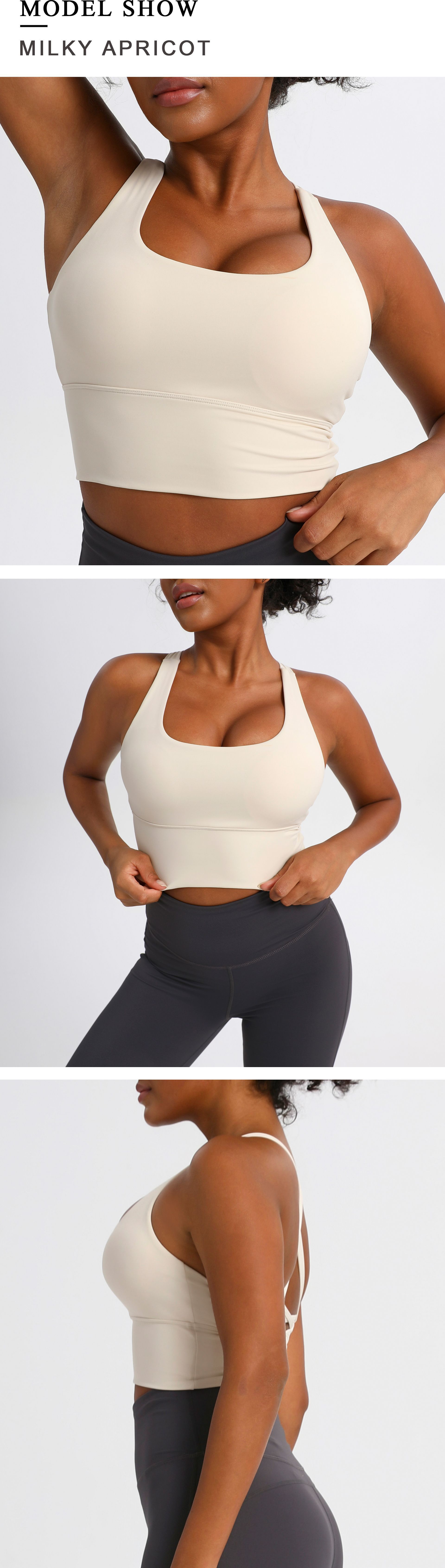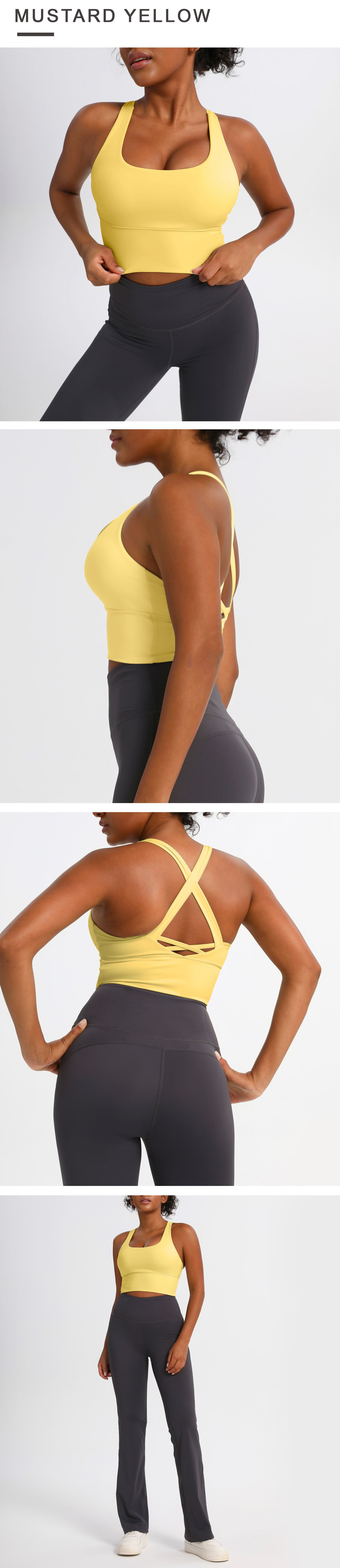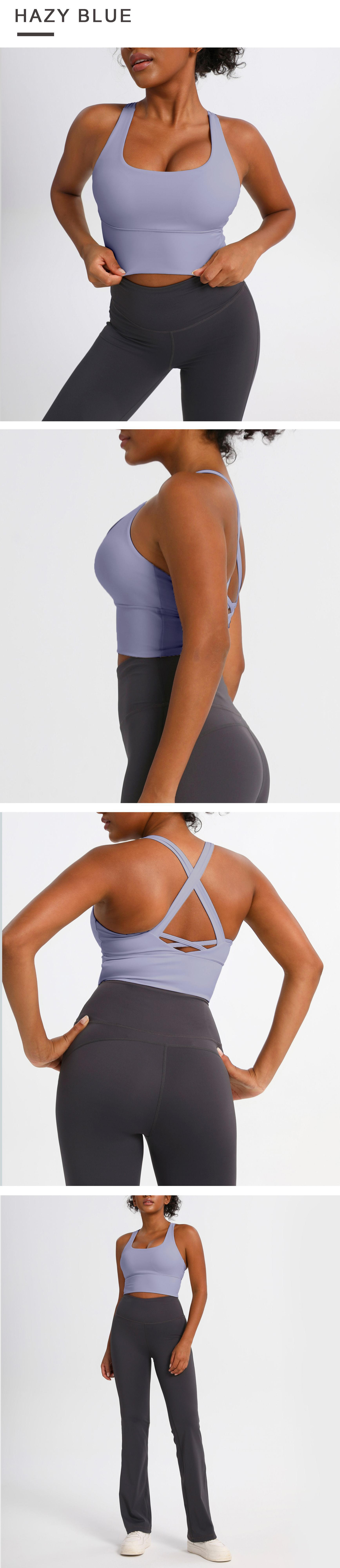 유럽과 미국의 크로스백 스포츠 브라, 누드 요가 조끼, 여성 피트니스 요가복 상의, 충격 흡수 스포츠 브라