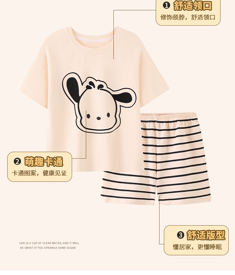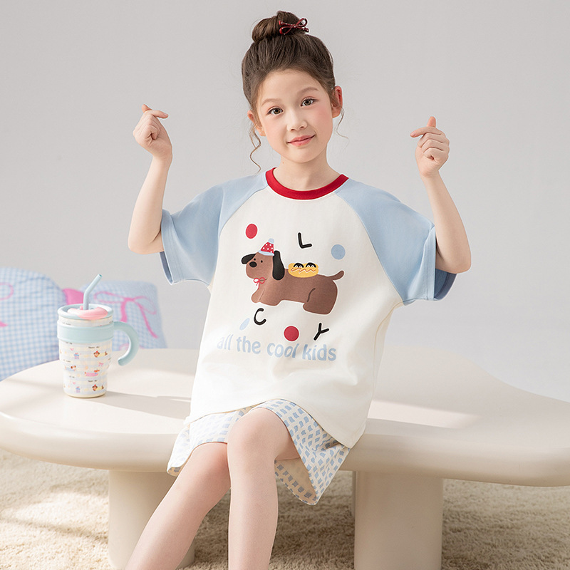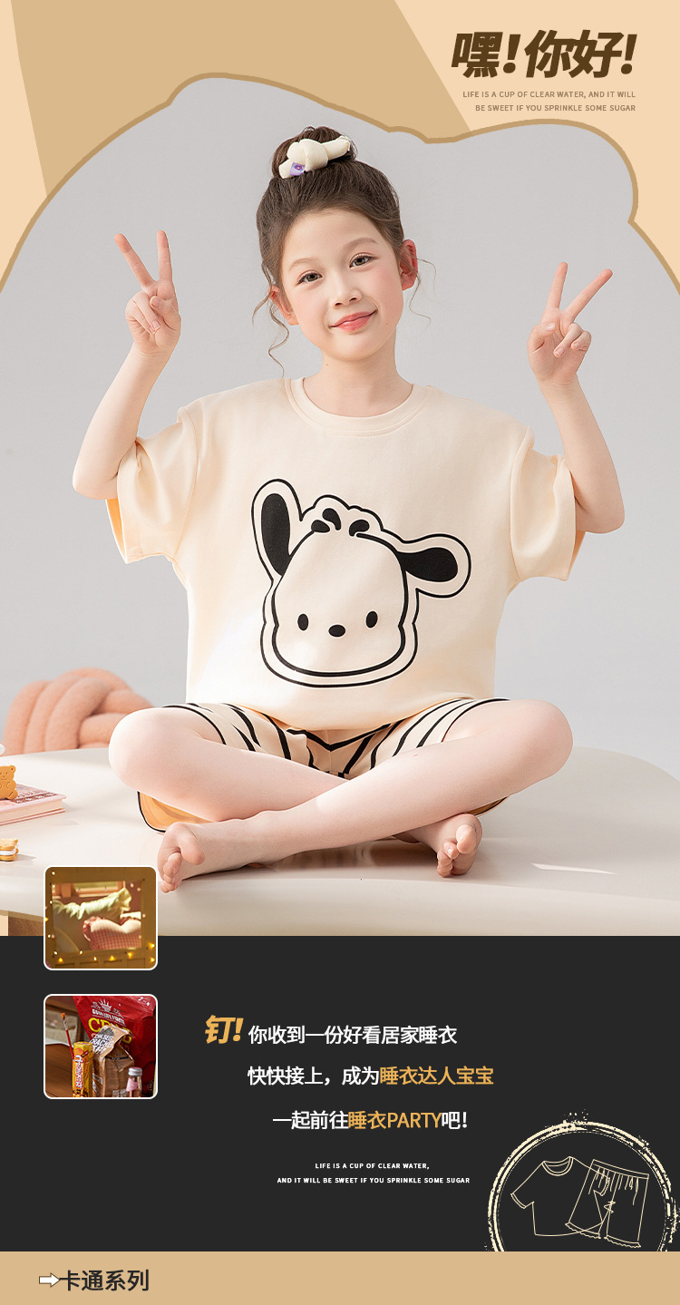 소녀를위한 어린이 잠옷 봄과 여름 순수한면 얇은 두 배 짧은 세트 소녀 중 큰 아이들 만화 아기 집 옷스토어 가기