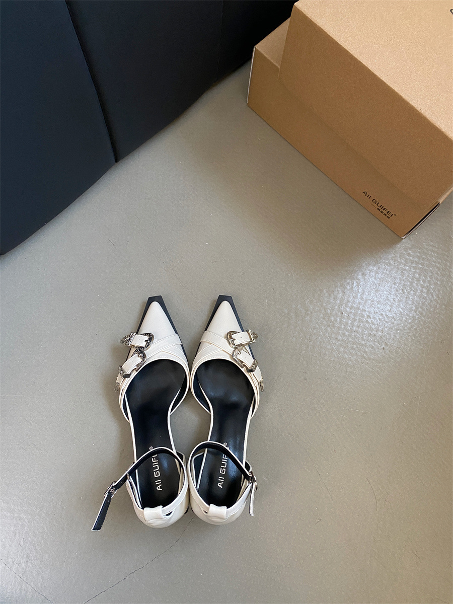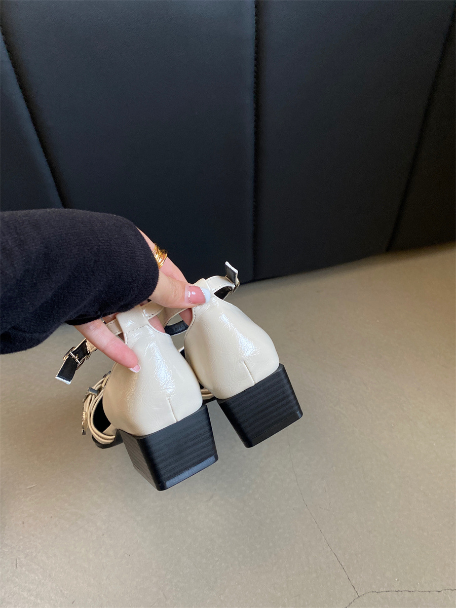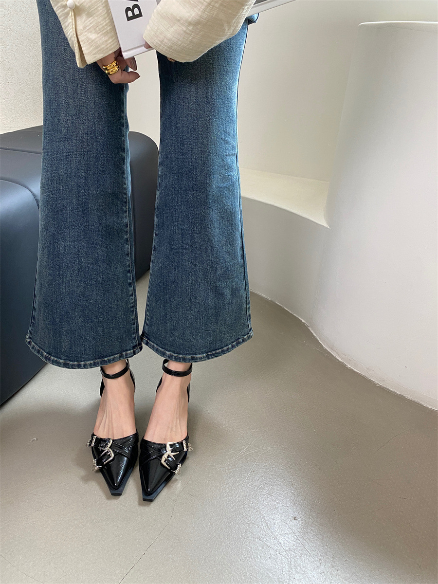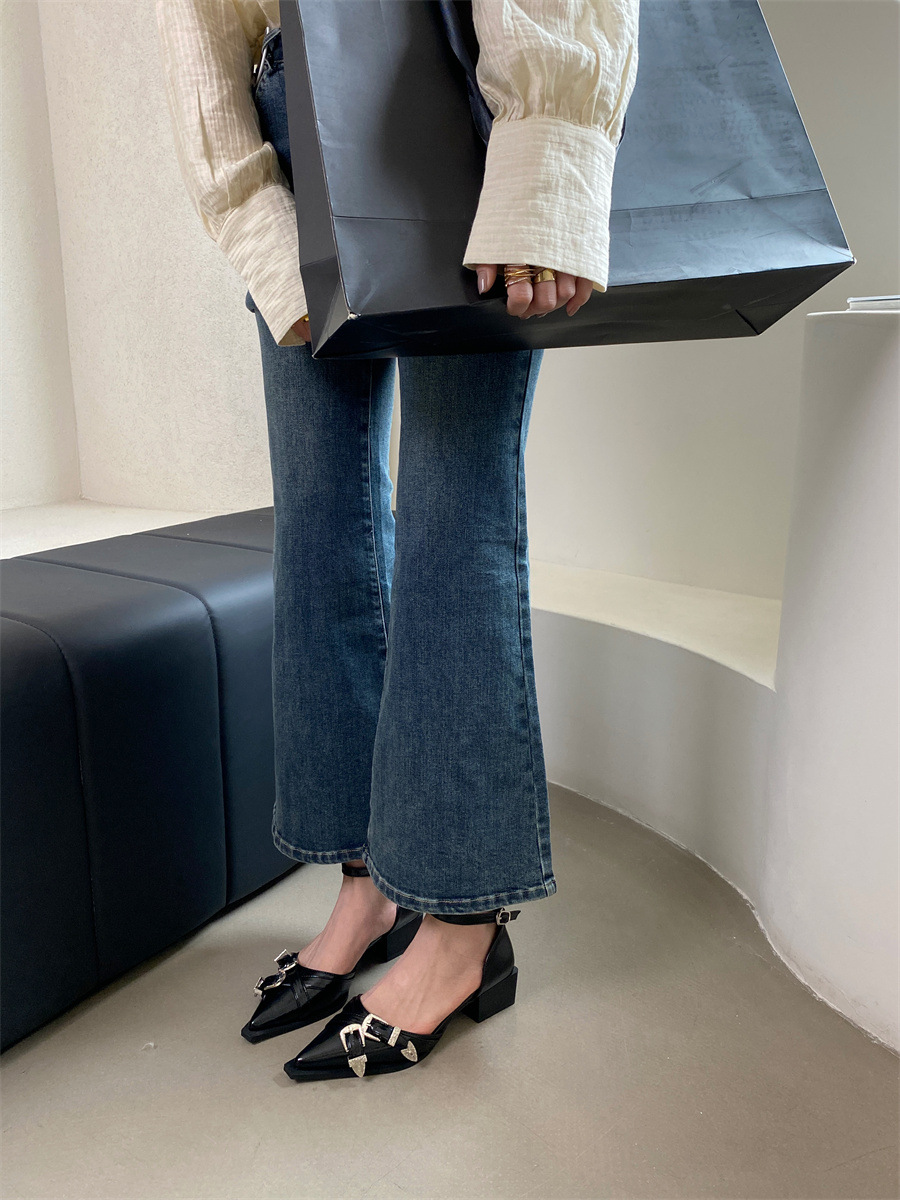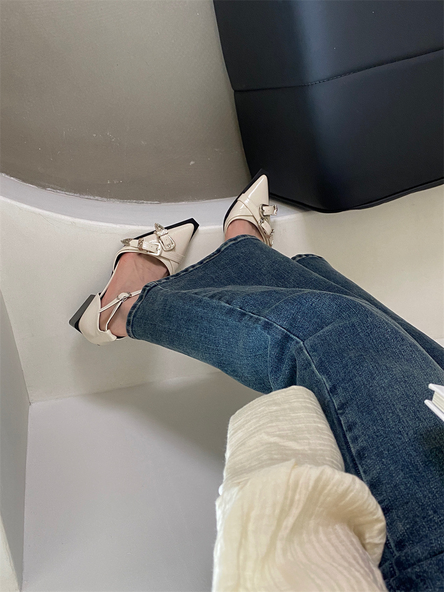 여성을위한 뾰족한 신발 2025 봄 새로운 디자인 틈새 메리 제인 두꺼운 굽 크로스 버클 패션 샌들스토어 가기