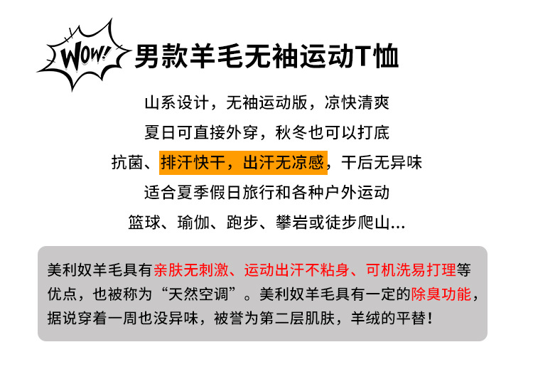 메리노 울 빠른 말린 옷 남자 야외 스포츠 조끼 Xia Merino 민소매 티셔츠 달리기 피트니스 탑 H22