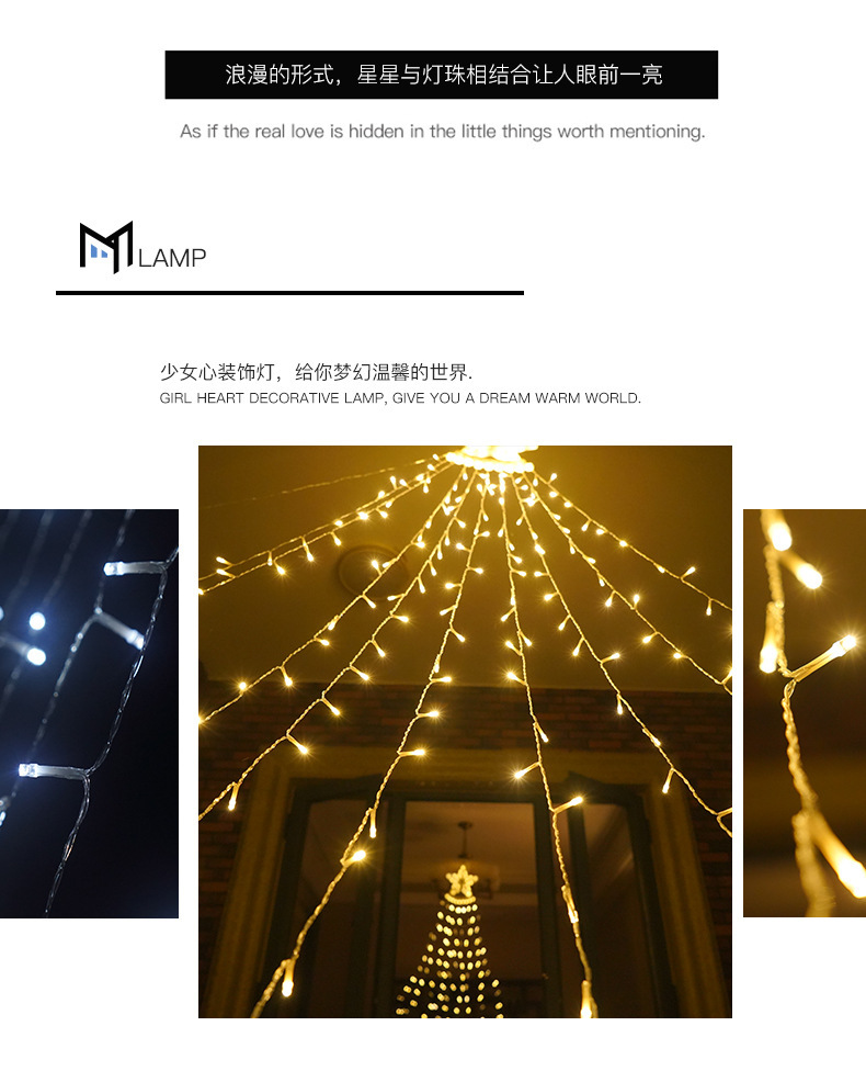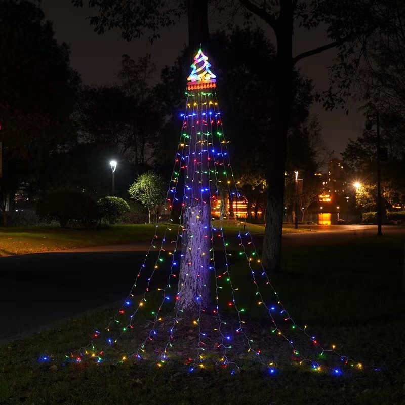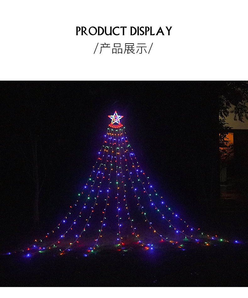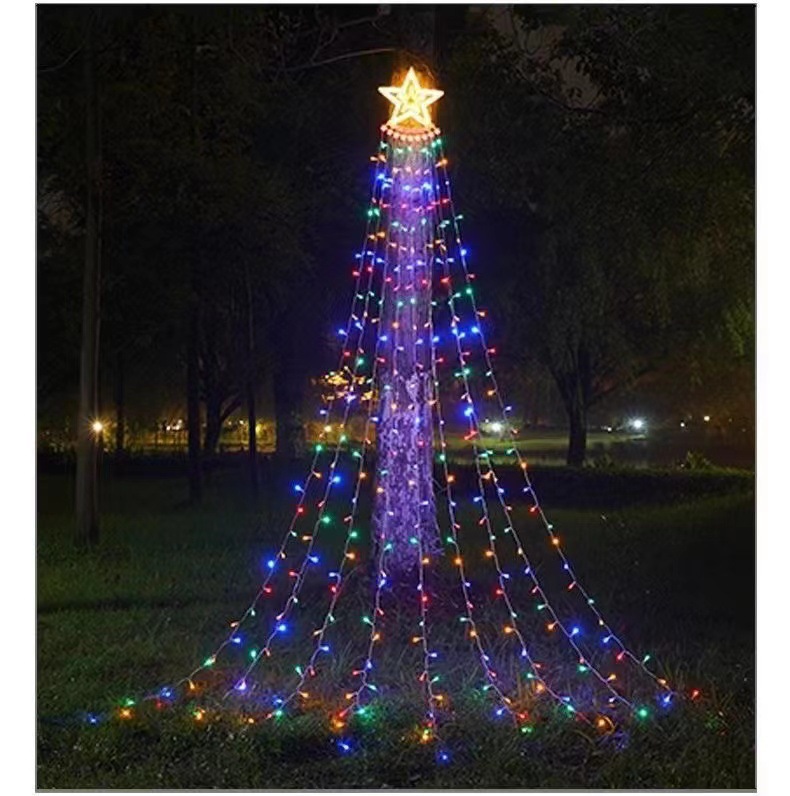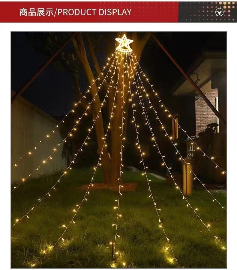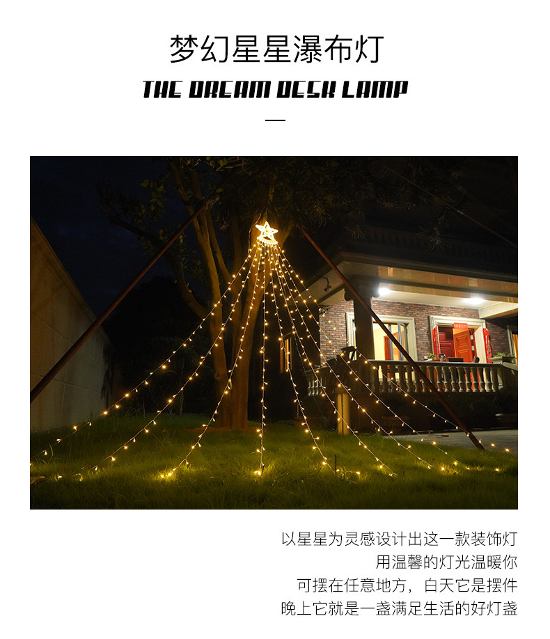 LED 크리스마스 장식 트리 조명 다섯개 별 폭포 조명 야외 안뜰 태양열 크리스마스 트리 조명 스트링 조명 스트립