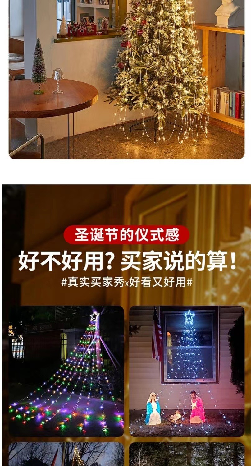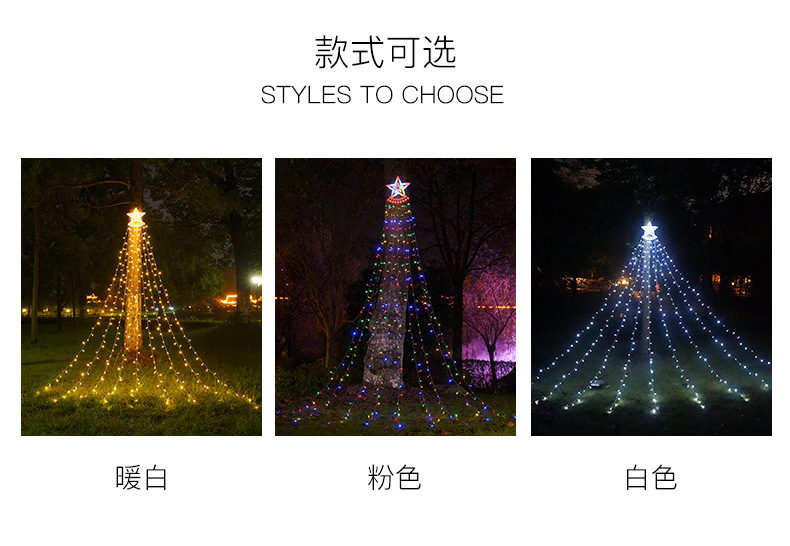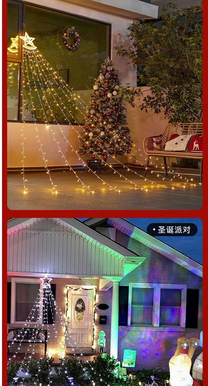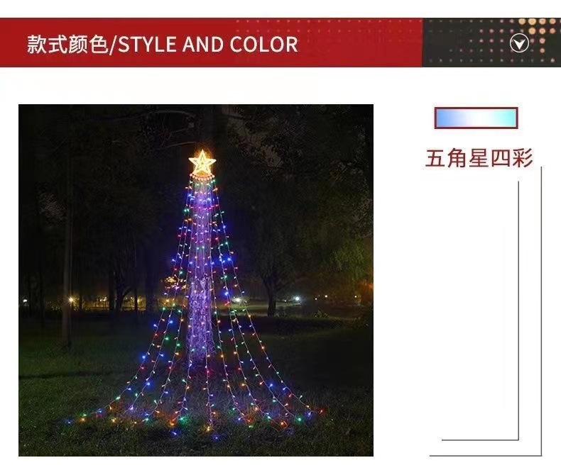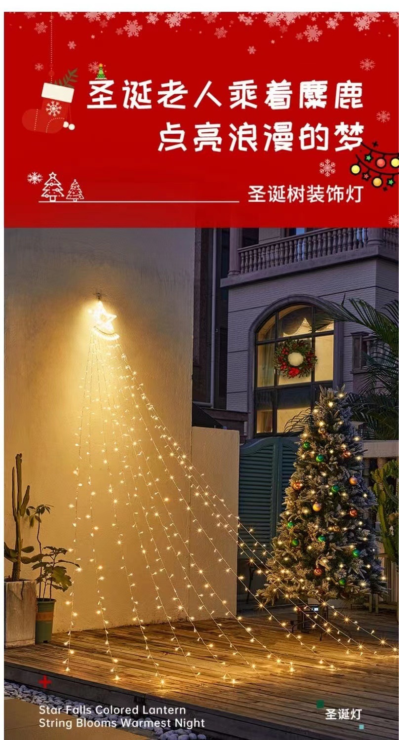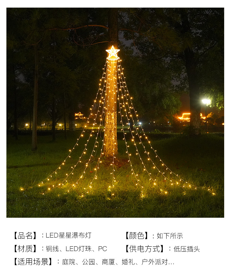 LED 크리스마스 장식 트리 조명 다섯개 별 폭포 조명 야외 안뜰 태양열 크리스마스 트리 조명 스트링 조명 스트립스토어 가기