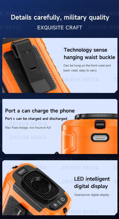 야외 허리걸이형 선풍기, 미니 휴대용 강풍 비상 손전등 선풍기, 캠핑용 긴 배터리 수명의 모바일 전원 공급 장치