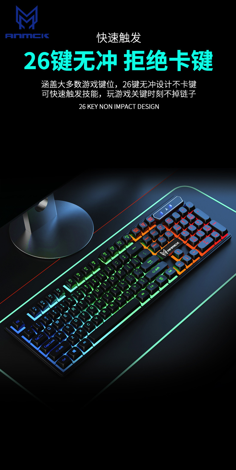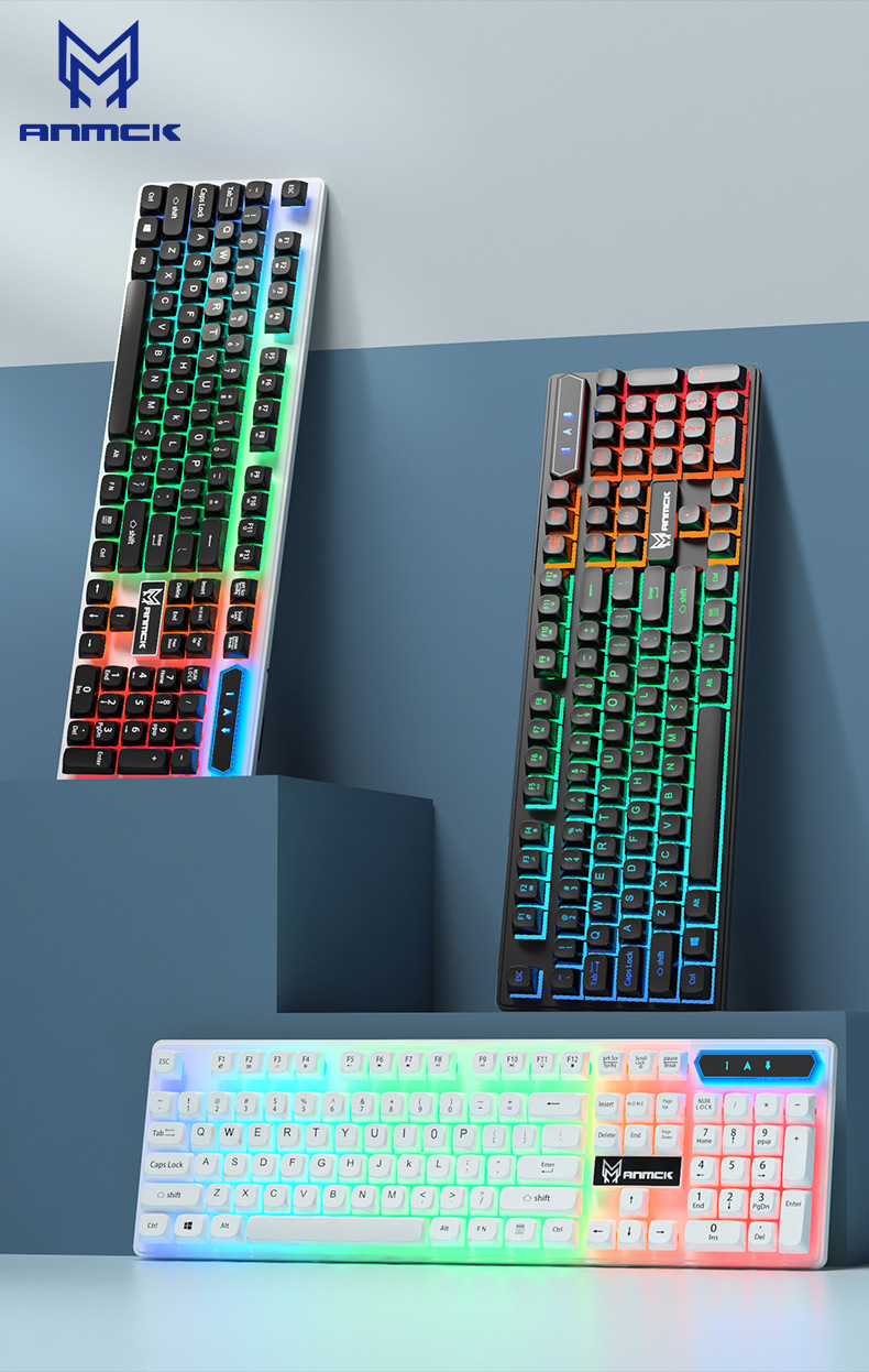 모켄 공장 자체 디자인 유선 게이밍 발광 키보드, 기계식 느낌, 사무용 선물, 재고 있음