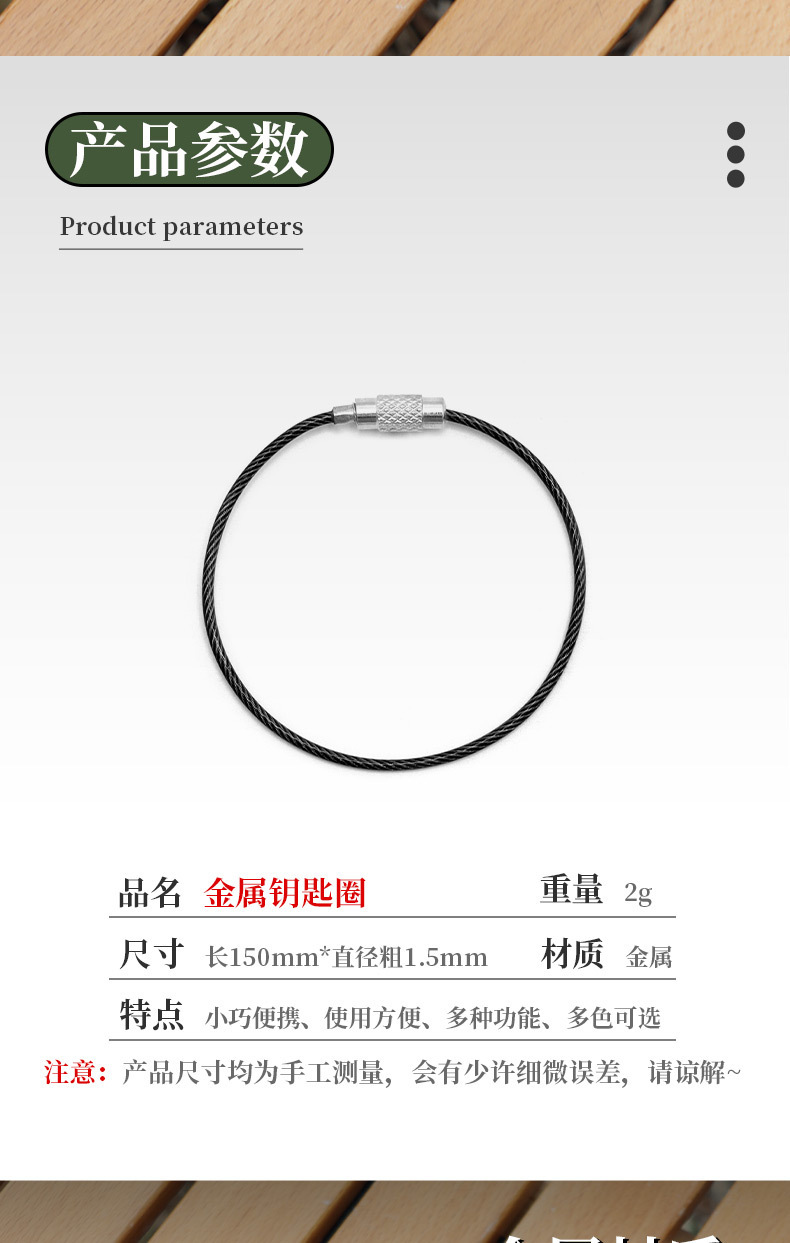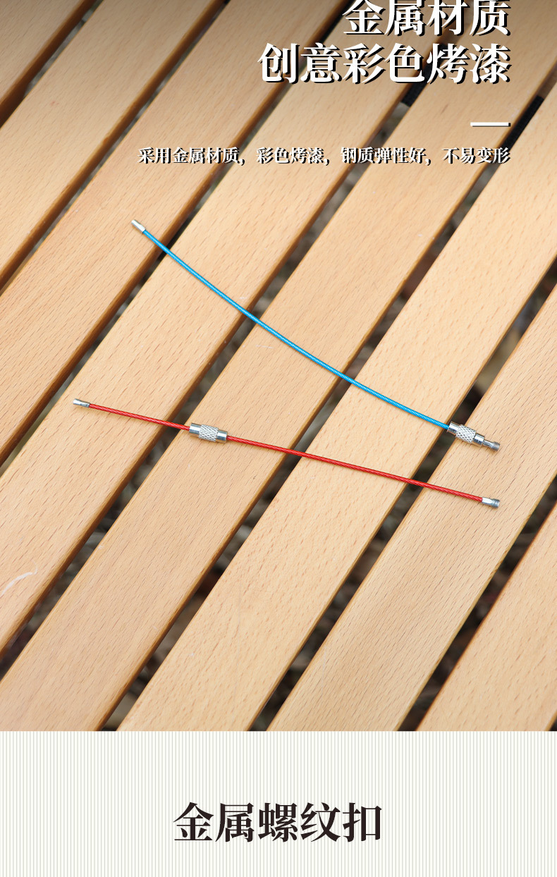 1.5x150mm 컬러 코팅 스테인레스 스틸 와이어 로프 키 체인 금속 와이어 링 태그 걸이 버클 와이어 잠금 버클