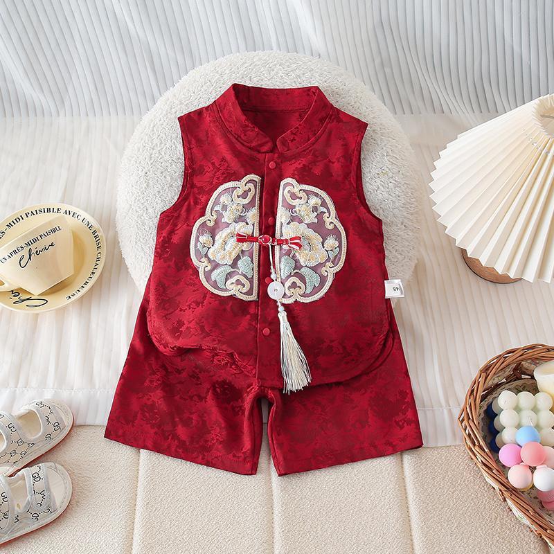 남자 아기 여름 세트 중국 당나라 세트 쪼개지는 투피스 세트 아기 100 일 늙은 원피스 국가 스타일 선물을주는 옷스토어 가기