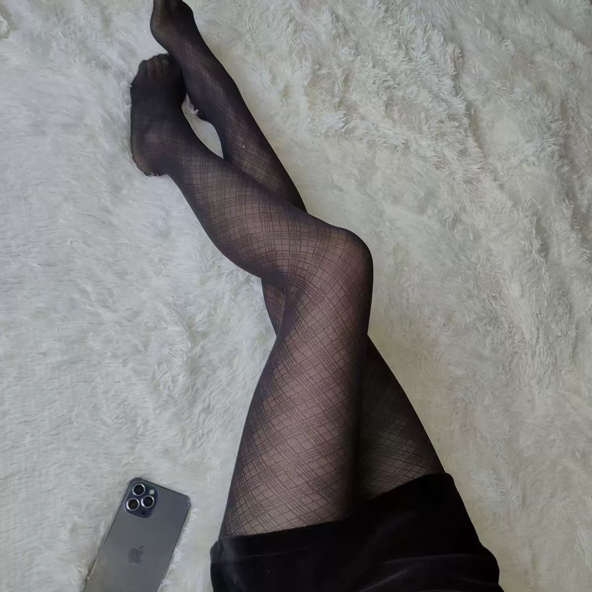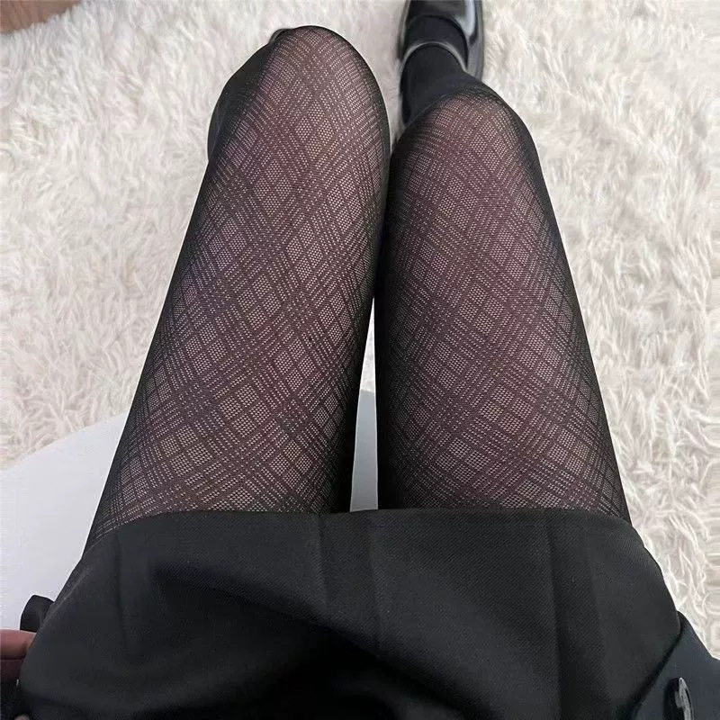 국경 간 팬티 스타킹 여성 일본 소형 격자 무늬 다리 스키니 블랙 격자 무늬 로리타 실크 스타킹 하위 문화 매운스토어 가기
