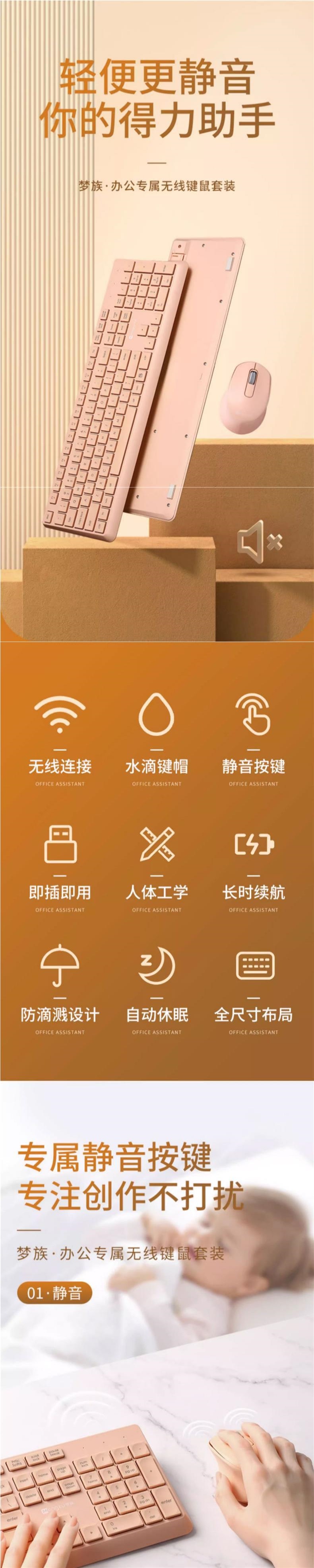 무선 키보드 마우스 세트 및 노트북 컴퓨터 외부 키보드 마우스 소녀 사무실 음소거스토어 가기