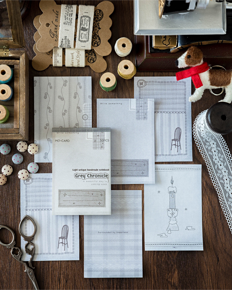 모 잉크 빛 복고풍 흰색 크래프트 종이 메모장 봉제 시간 시리즈 50 직물 소재 콜라주 백킹에
