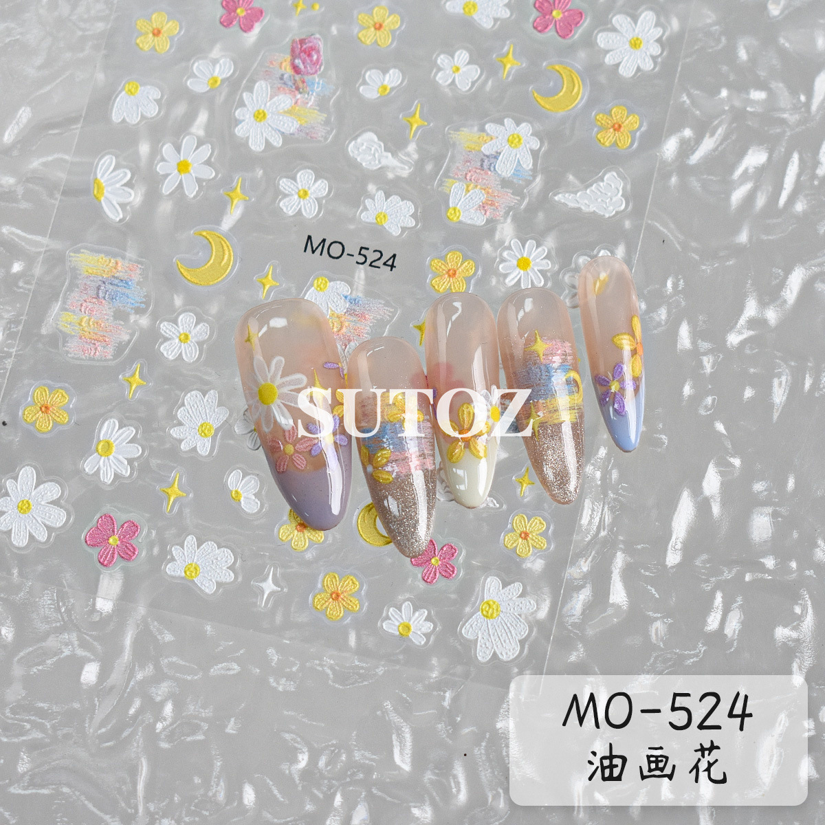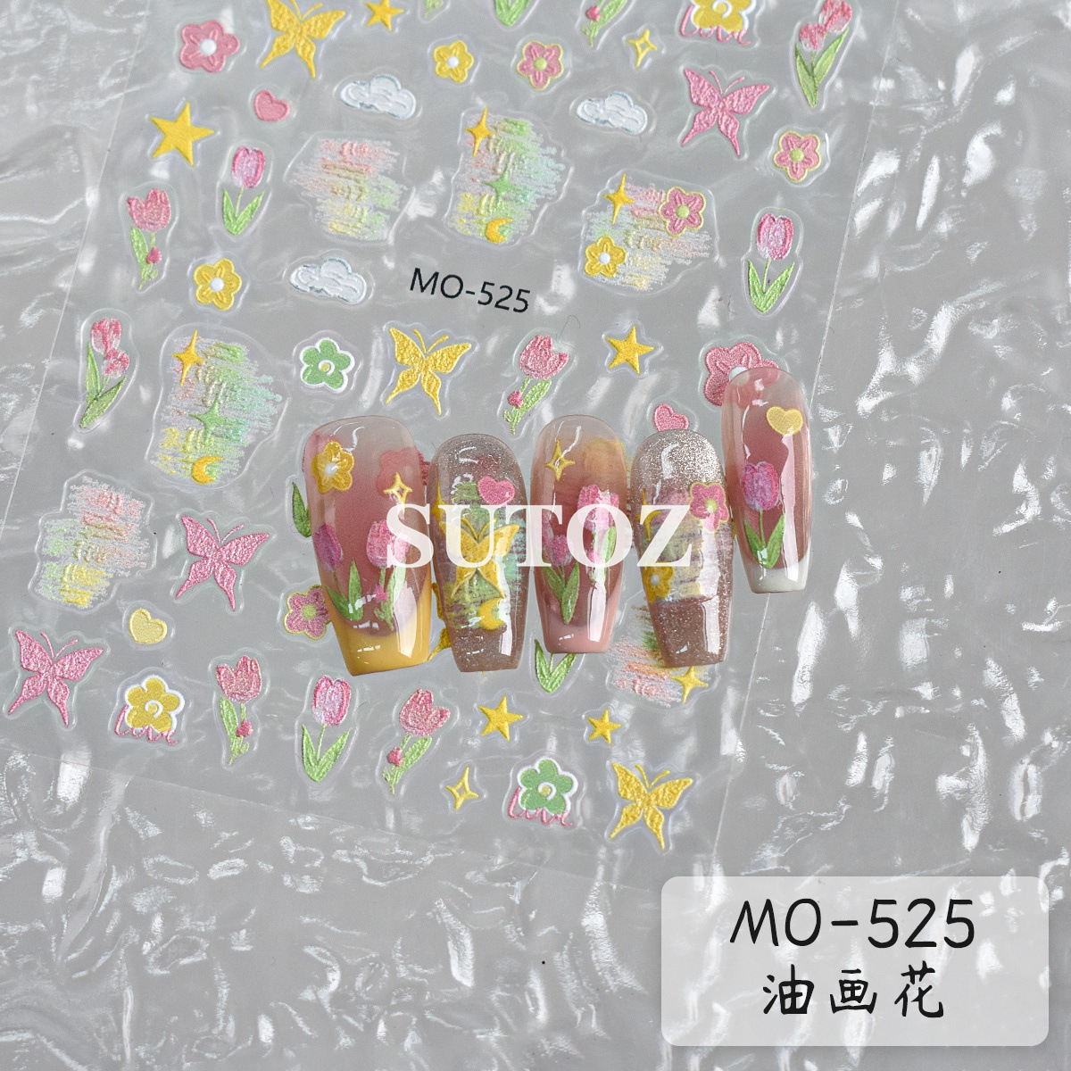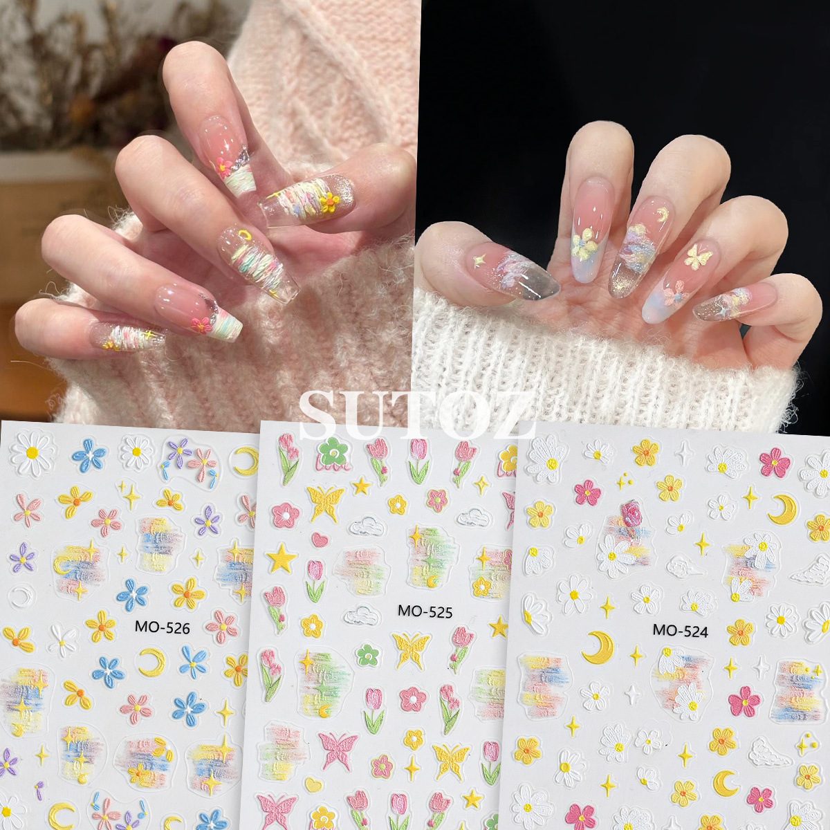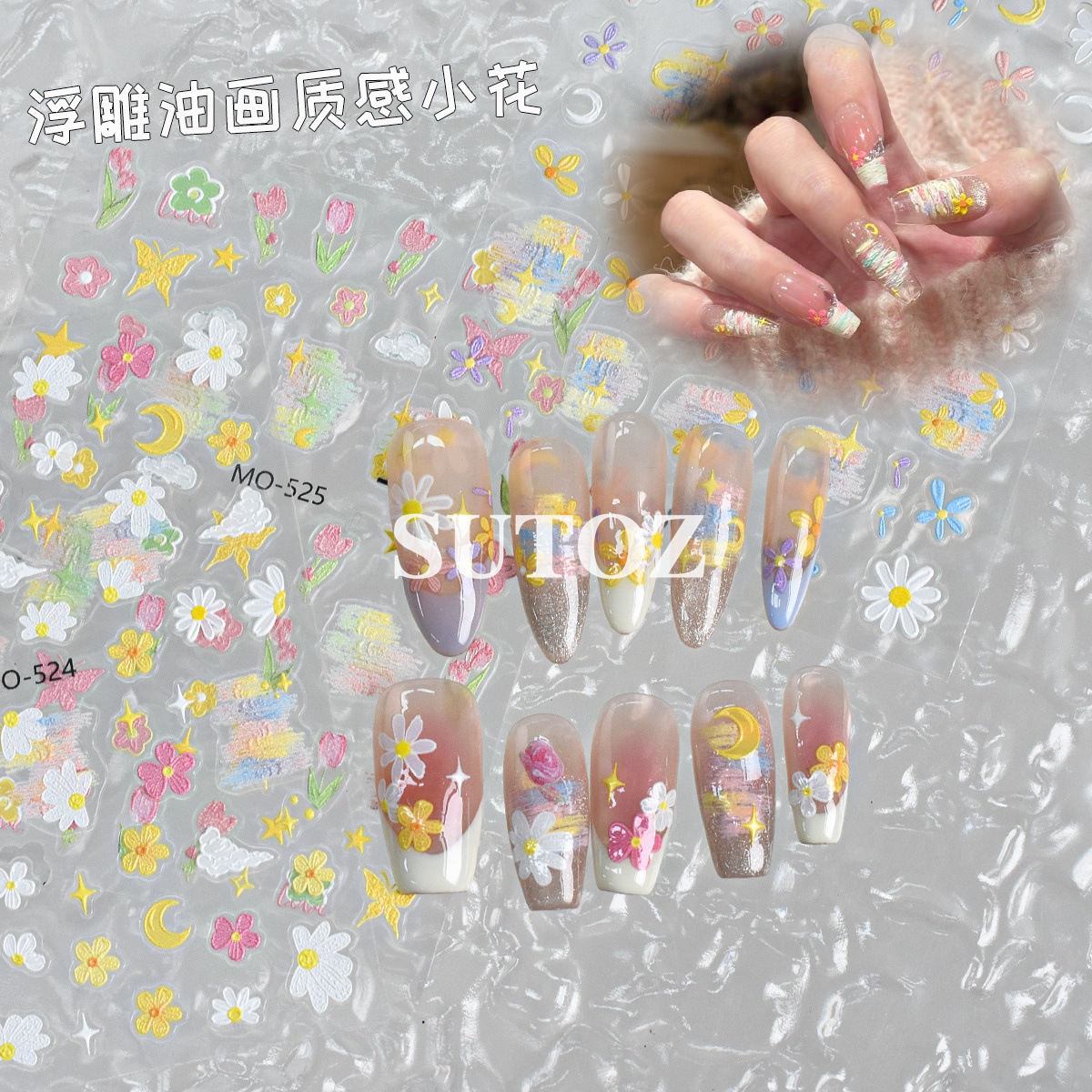 2025 철자 저녁 새 네일 아트 스티커 여름 현야 바람 유화 꽃 릴리프 네일 DIY 다시 접착 스티커스토어 가기