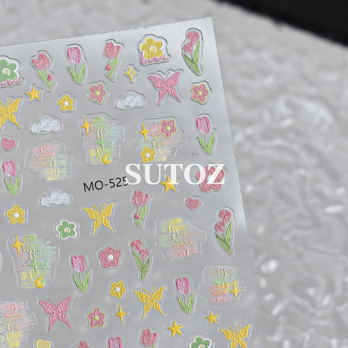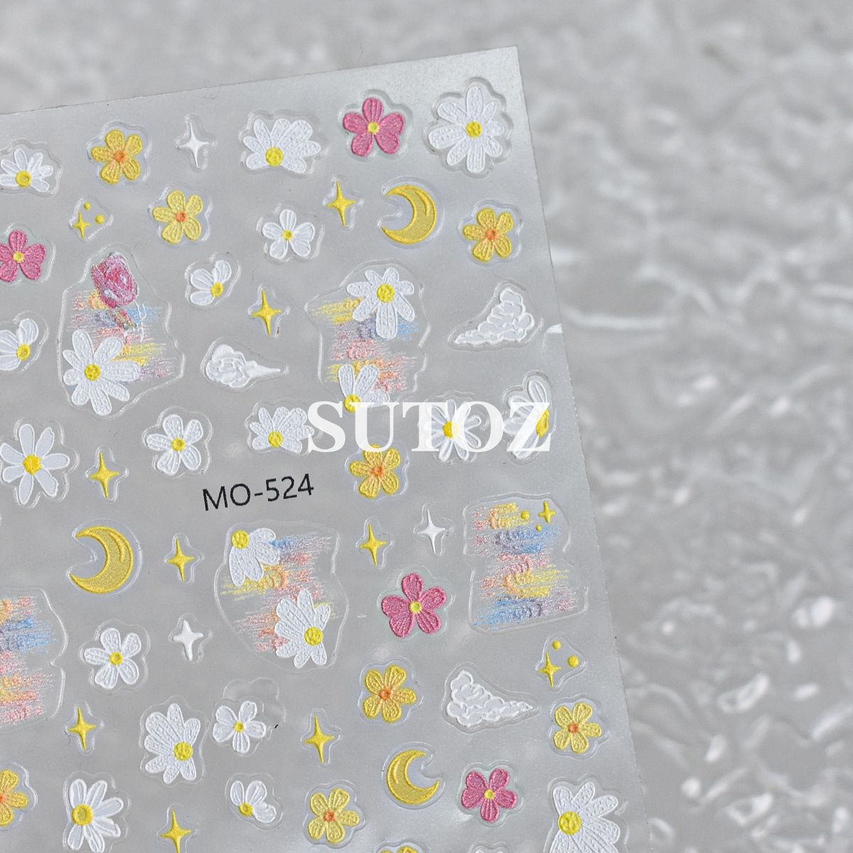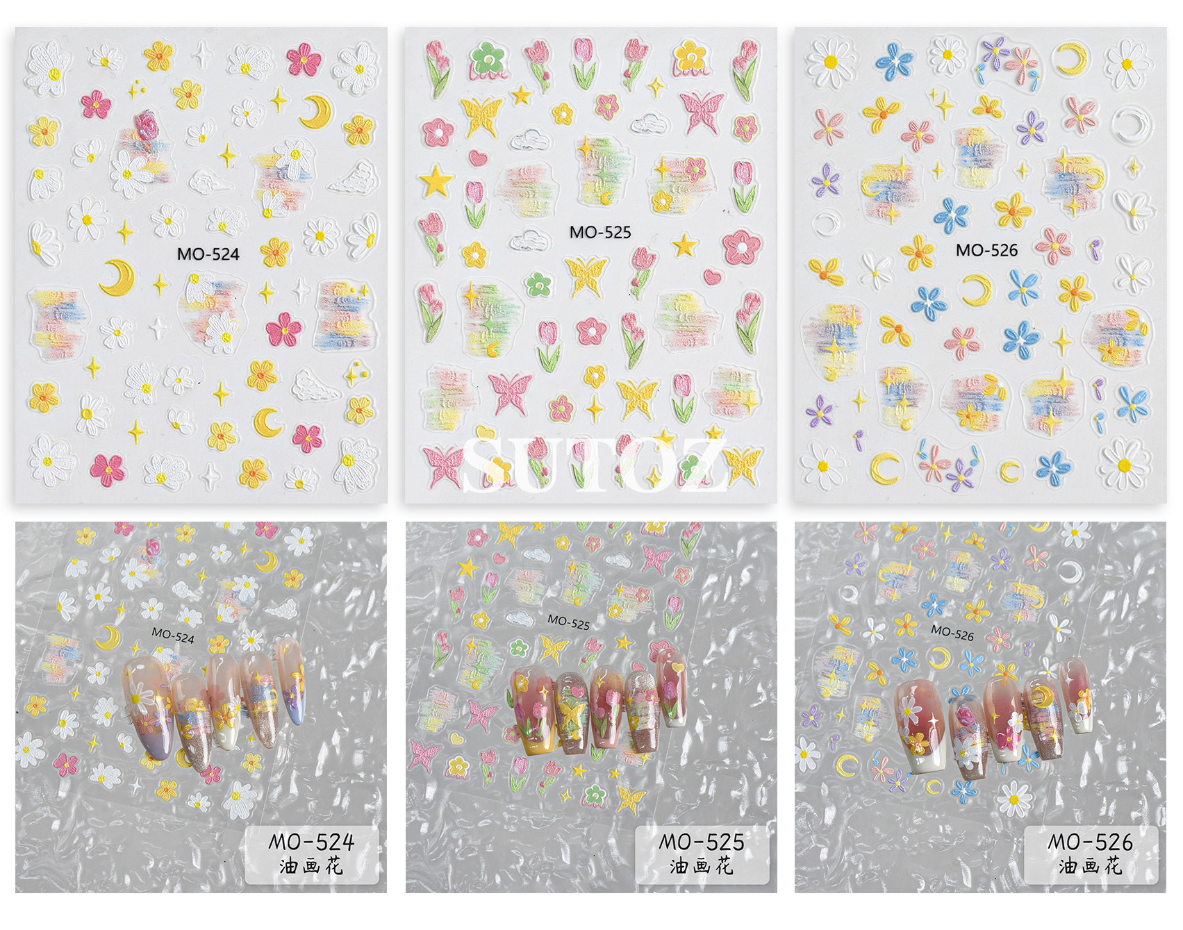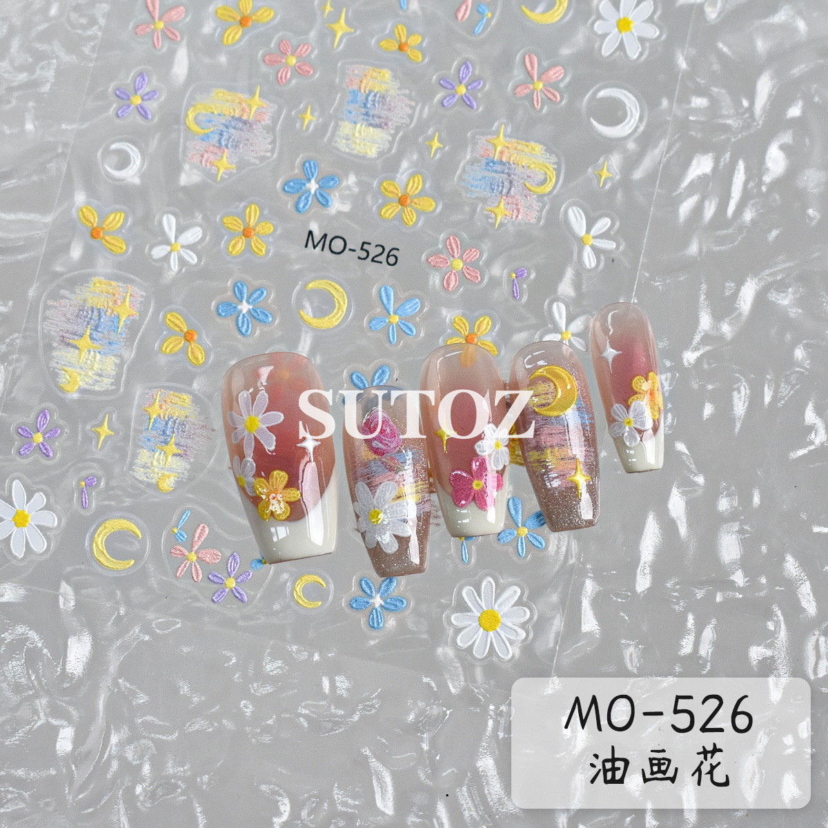 2025 철자 저녁 새 네일 아트 스티커 여름 현야 바람 유화 꽃 릴리프 네일 DIY 다시 접착 스티커스토어 가기