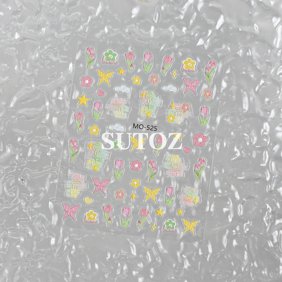 2025 철자 저녁 새 네일 아트 스티커 여름 현야 바람 유화 꽃 릴리프 네일 DIY 다시 접착 스티커