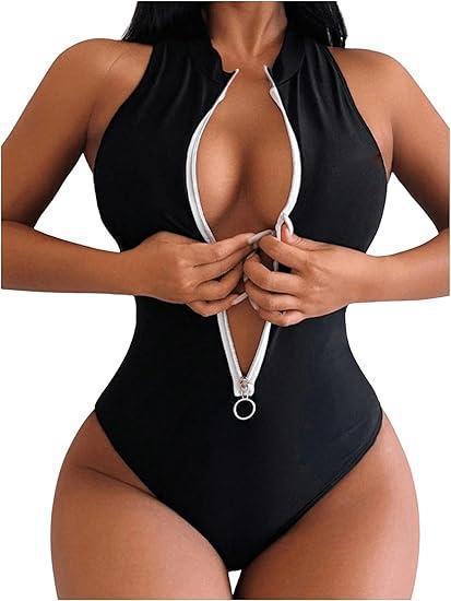 2025 유럽과 미국의 국경 간 대외 무역 새로운 단색 지퍼 꽉 끼는 등이없는 푸시 업 섹시한 원피스 수영복 여성 서핑 슈트스토어 가기