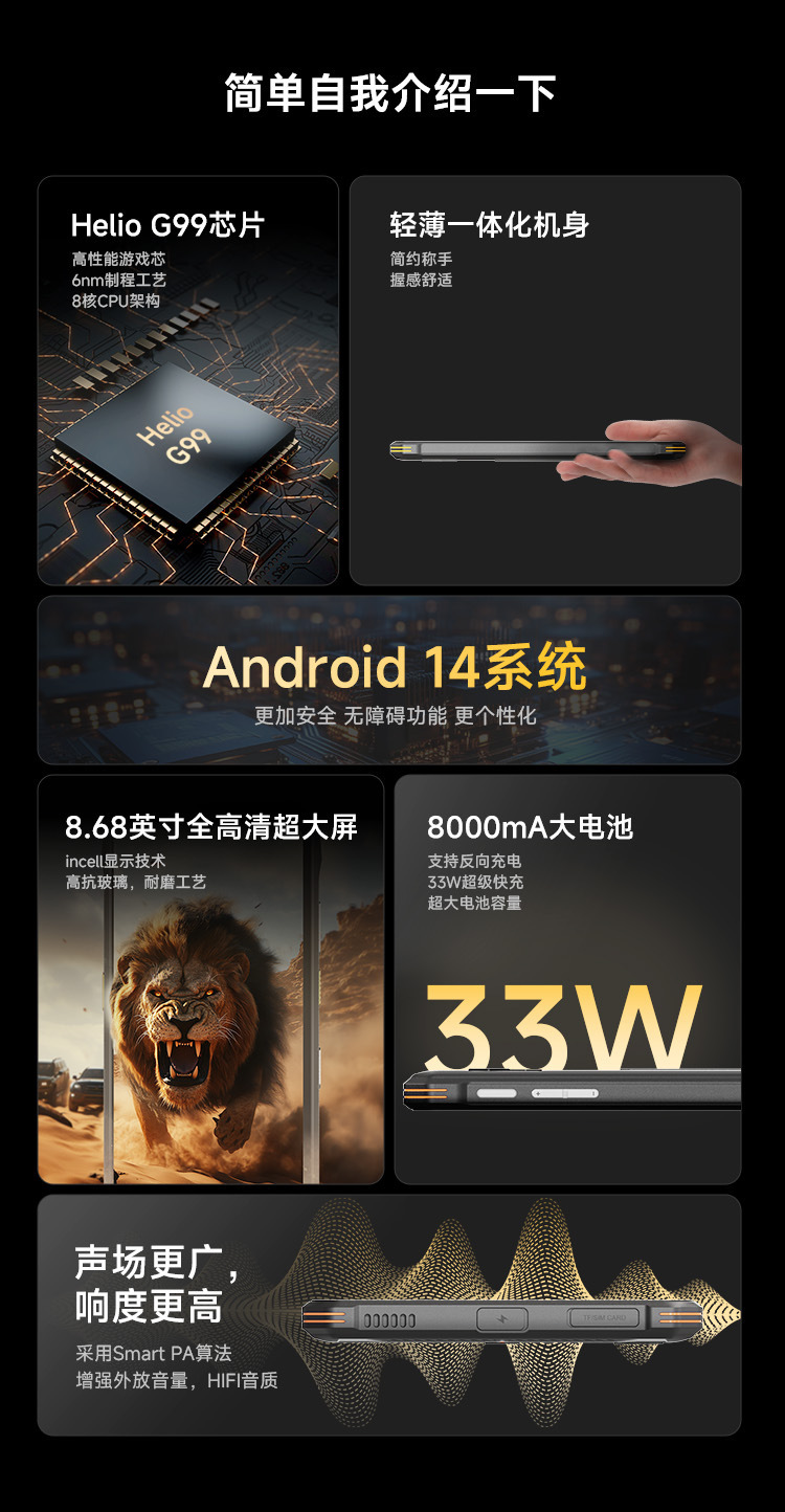 • 8.68inch /8+128G/안드로이드 14/8000mAh 대용량 배터리/IP68
