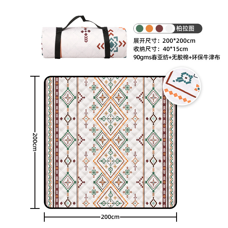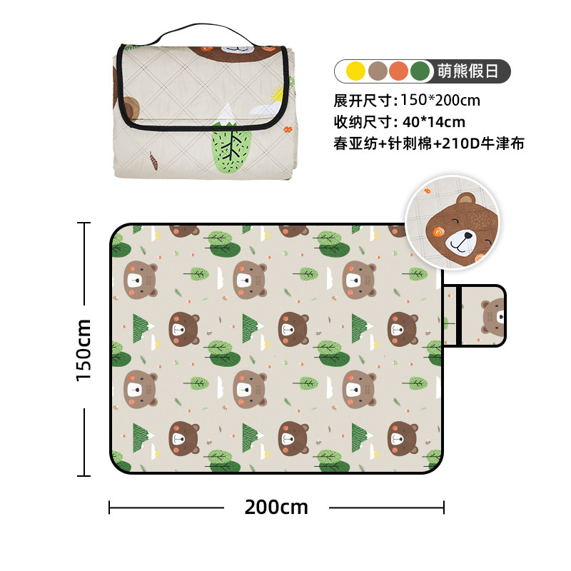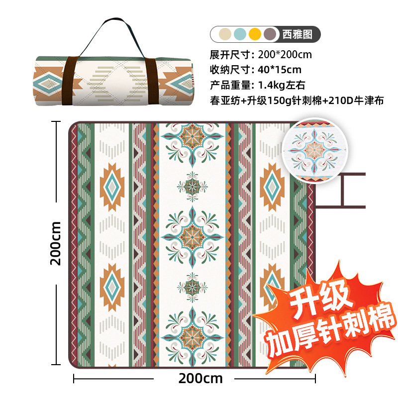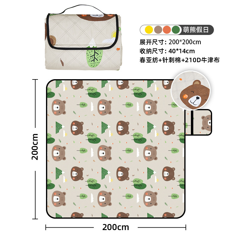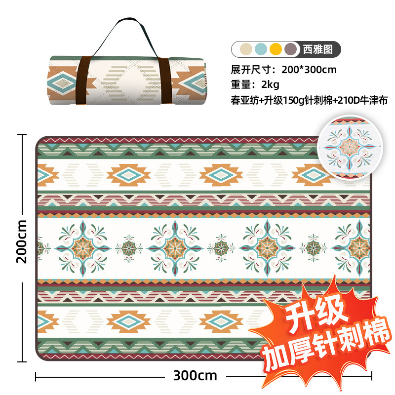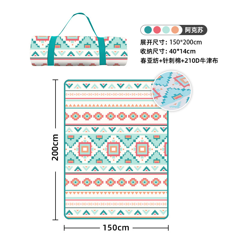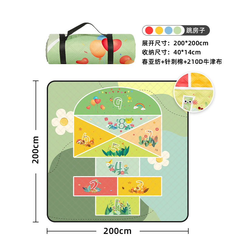 视频里面的是底部210D牛津布款式,300D牛津布防水(颜色蓝色)底部是老款,表面是没有防泼水的。作为野餐垫底部的防水层,牛津布抗撕裂,防水防潮,可机洗,柔韧性强,不会像PEVA在超声波绗缝中容易被打出洞,从而影响防水和品质,并且牛津布底可以适应大多数地形场景,我司中间的填充针刺棉是80gsm,市面上常规的是60gsm,更厚更舒适,接下来我司会陆续推出时下时尚的款式,尺寸也会把2*3米和3*3米的加进来,后期更会推出防水很好的铝膜底的超声波野餐垫,具有更好的防水能力,可以隔绝冷热,铺在帐篷里面露营非常合适,耐撕裂,厚度更厚(克重达到110gsm左右,市面上PEVA 75gsm),耐磨性更强,如对我们后期推出的新品感兴趣,欢迎咨询选购。