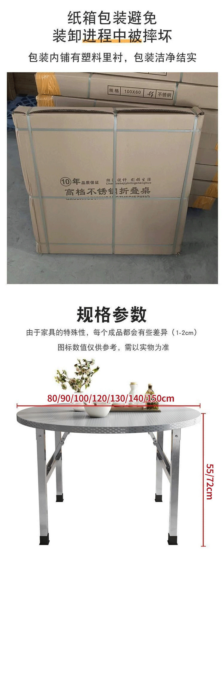 • 접이식 스테인레스 스틸 원형 120*72 높이