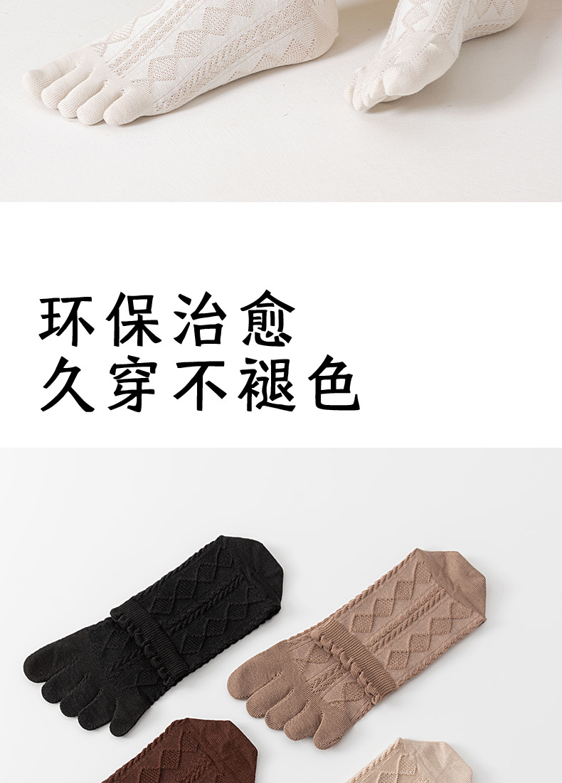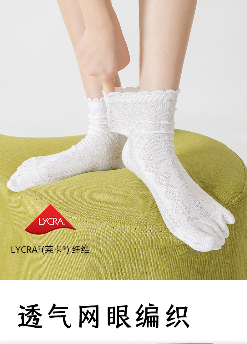 여름 여성용 맞춤형 얇은 메쉬 자카드 순면 다섯 손가락 양말, 땀 흡수성, 통기성 및 항균 레이스 미드 튜브 양말스토어 가기