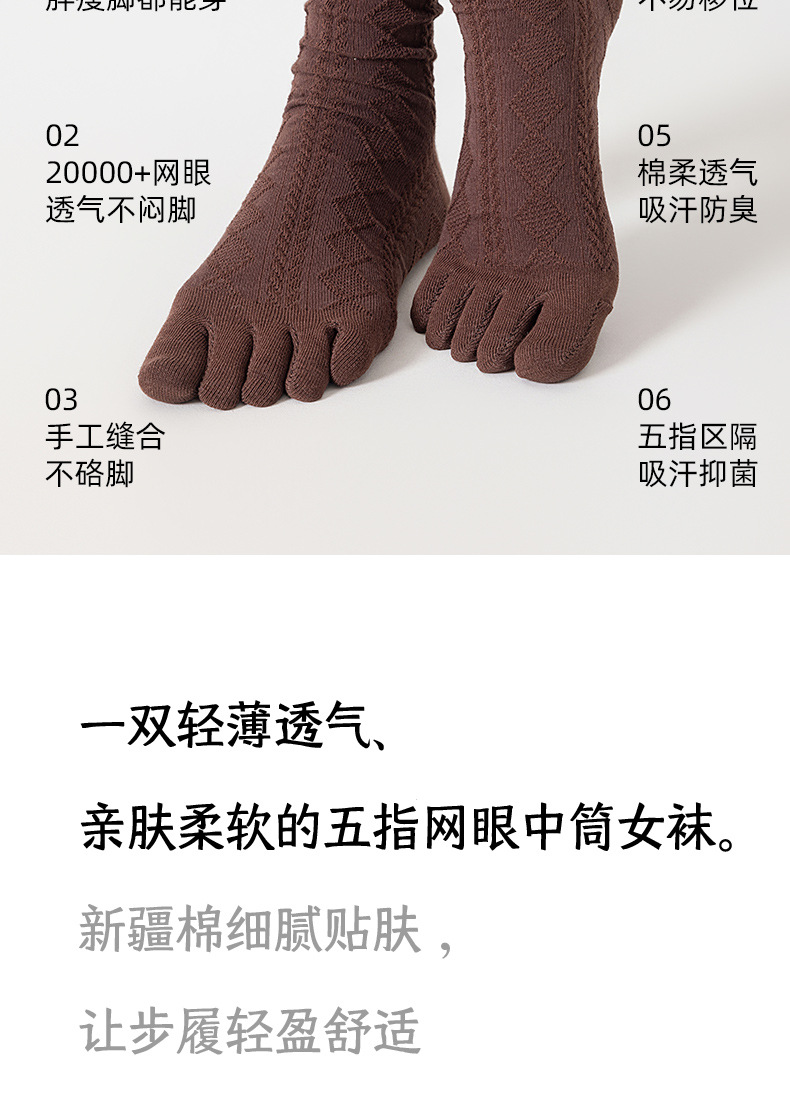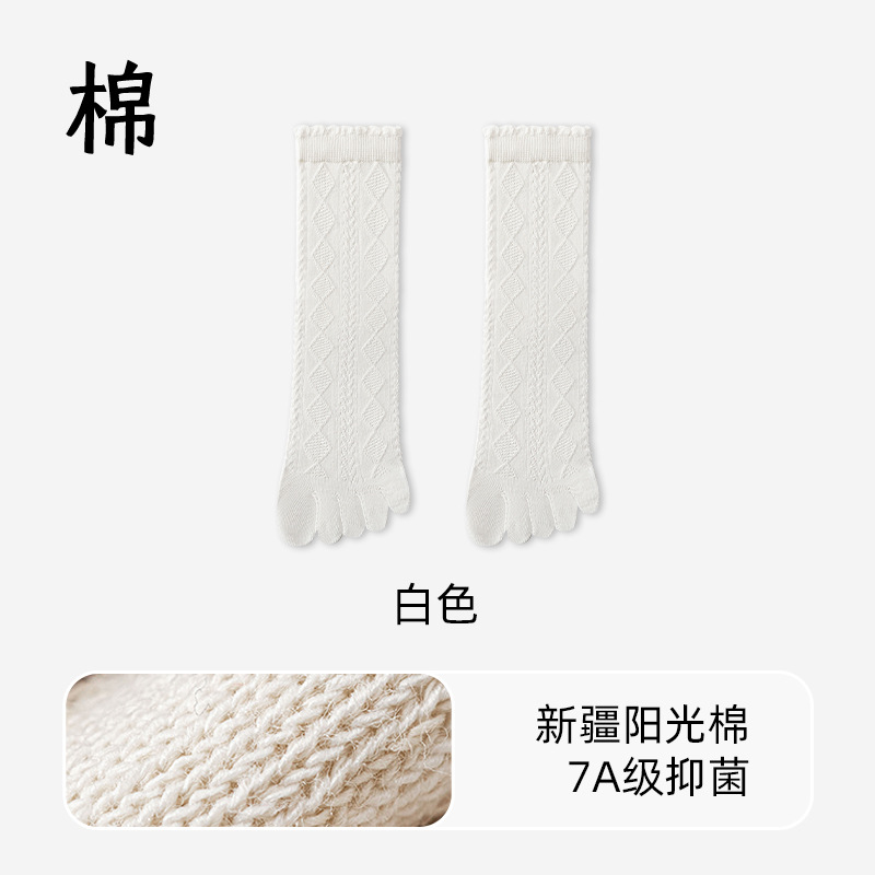여름 여성용 맞춤형 얇은 메쉬 자카드 순면 다섯 손가락 양말, 땀 흡수성, 통기성 및 항균 레이스 미드 튜브 양말