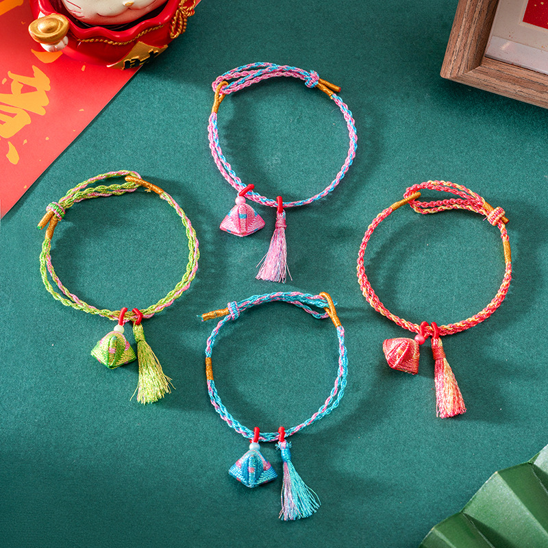 새로운 드래곤 보트 축제 팔찌 손으로 짠 Zongzi 술 손 밧줄 조정 가능한 민족 빨간 밧줄 학생 작은 선물