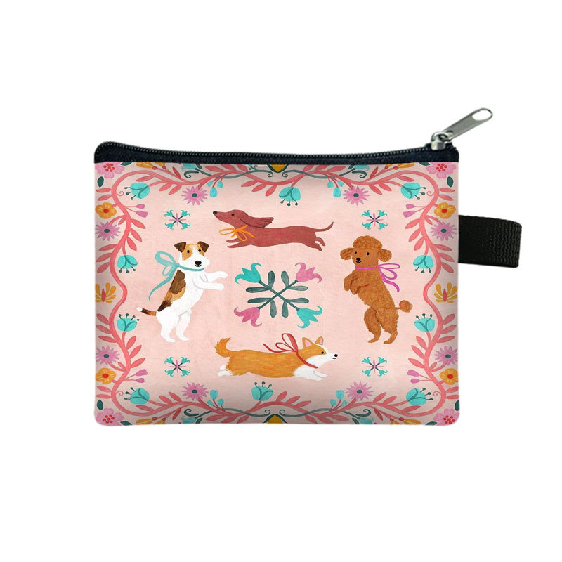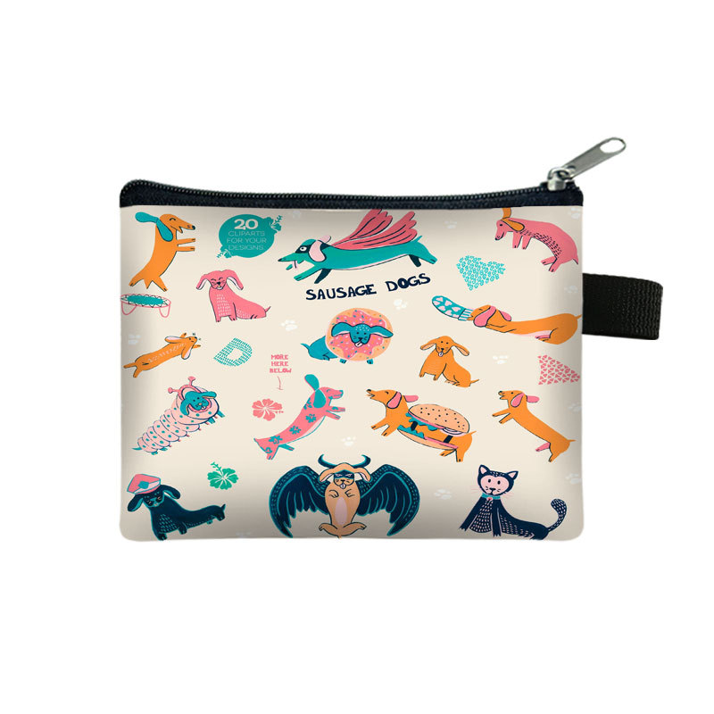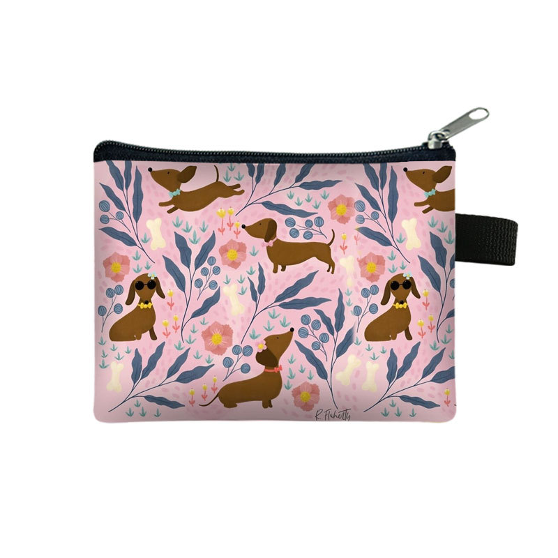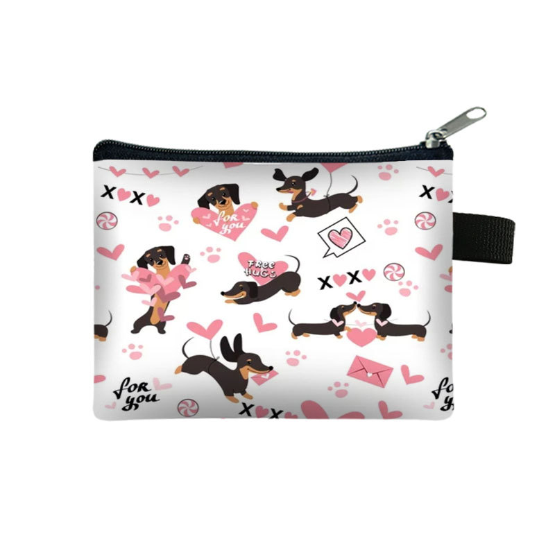 2025 귀여운 만화 닥스 훈트 어린이 동전 지갑 폴리 에스터 개 미니 가방 간단한 Ins 스타일 보관 가방
