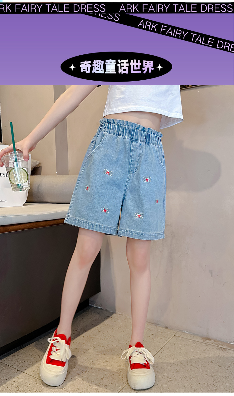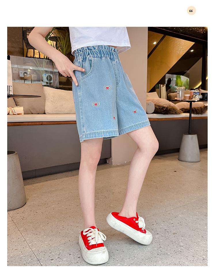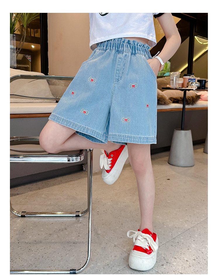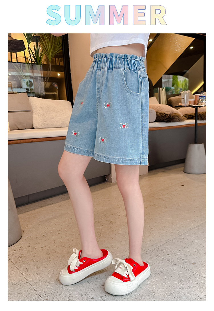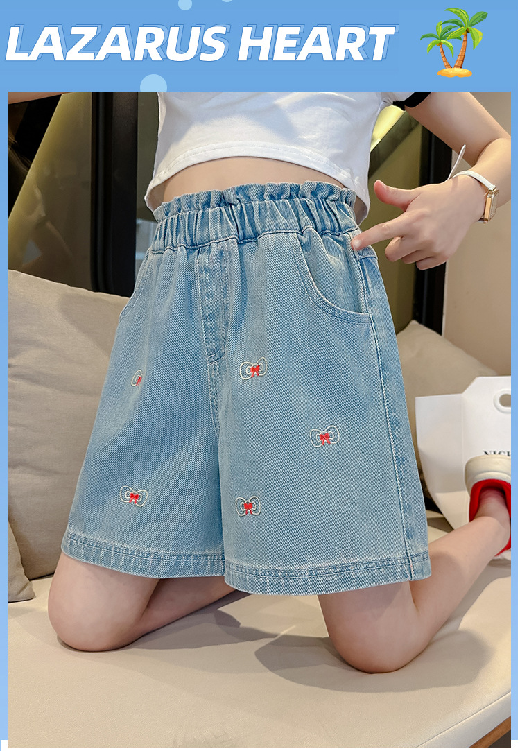 여아 데님 반바지 2025 여름 신작 아동용 리본 반바지, 중대형 아동 여름 반바지스토어 가기