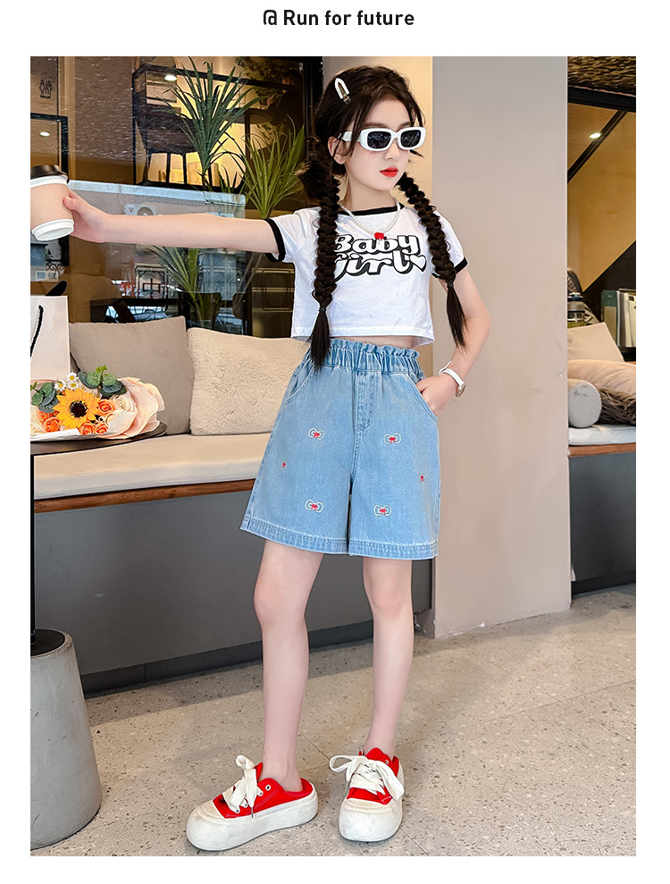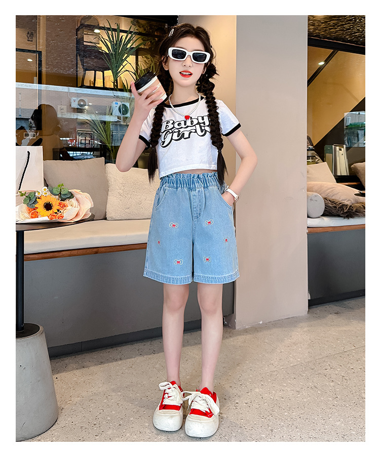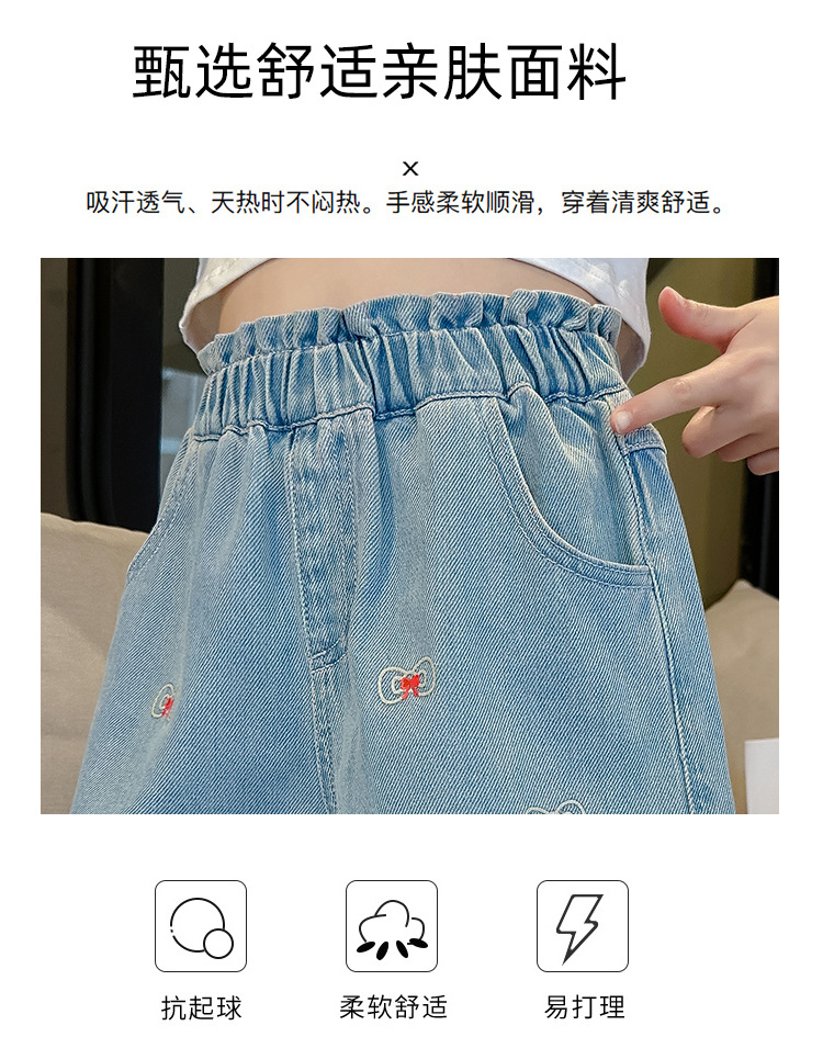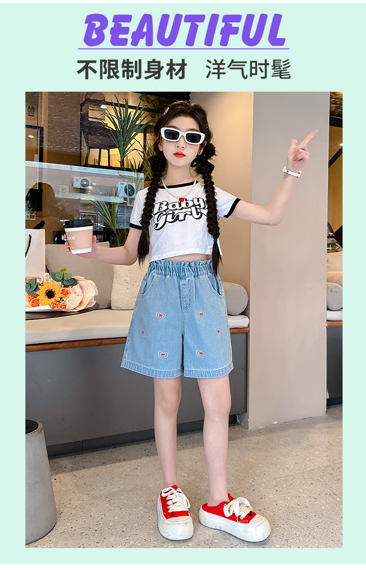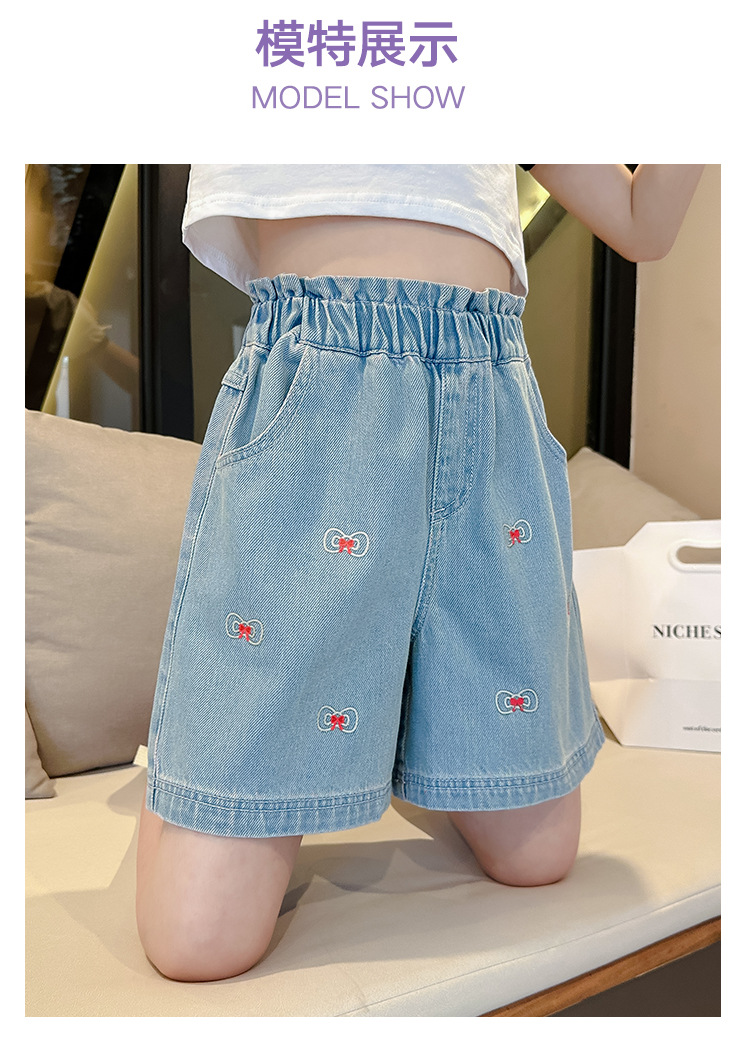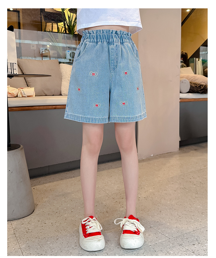 여아 데님 반바지 2025 여름 신작 아동용 리본 반바지, 중대형 아동 여름 반바지스토어 가기