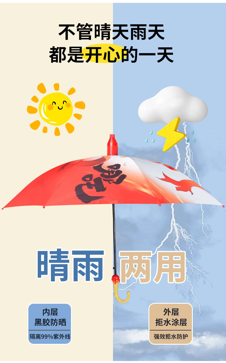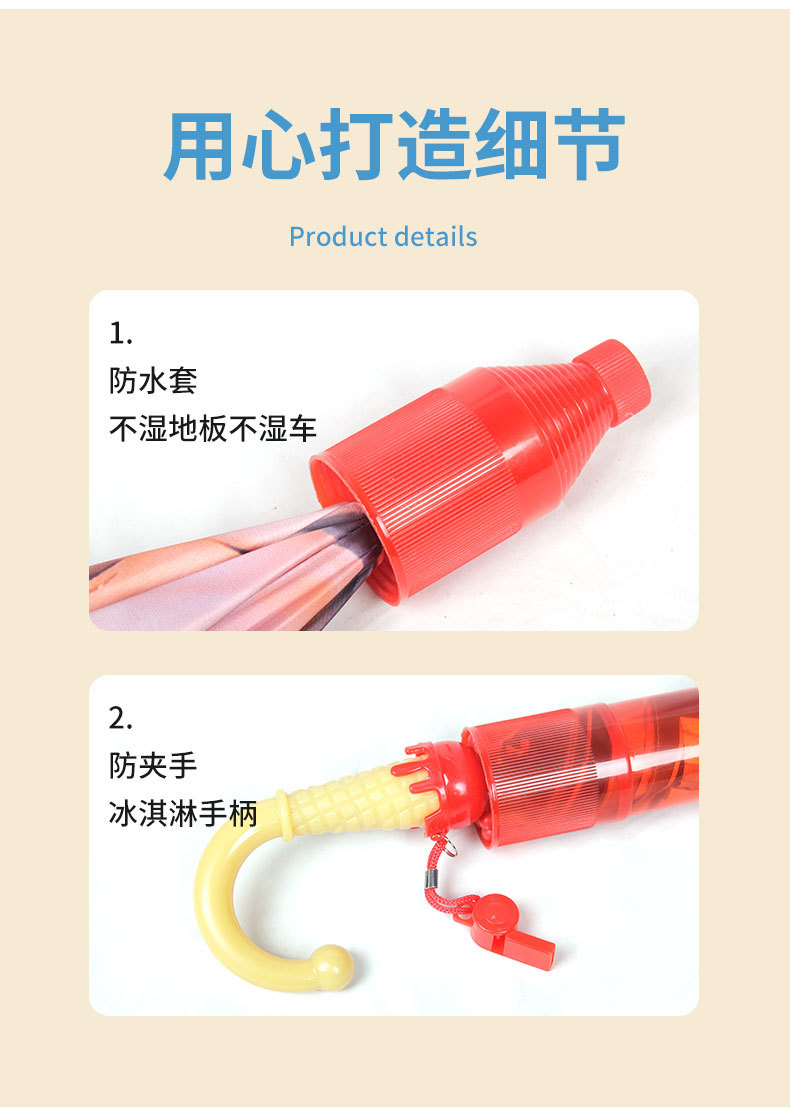 어린이 우산 긴 손잡이 직선 학생 파라솔 반자동 비닐 태양 보호 방수 커버 태양 우산 소년과 소녀