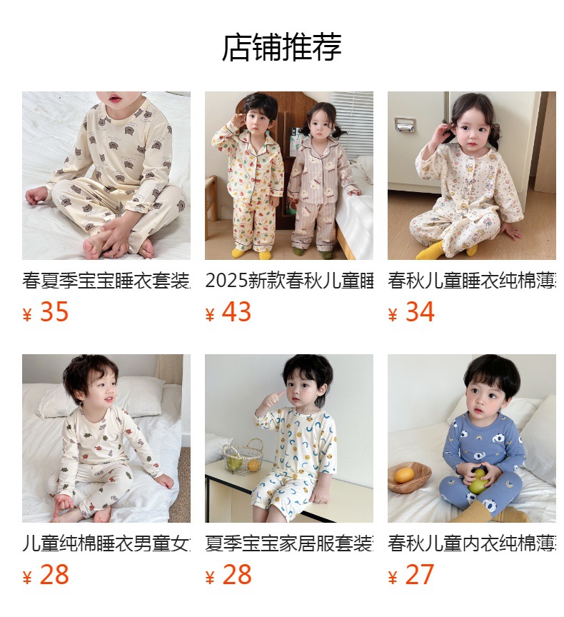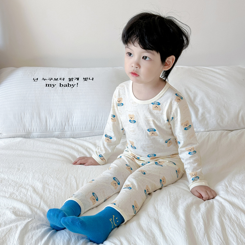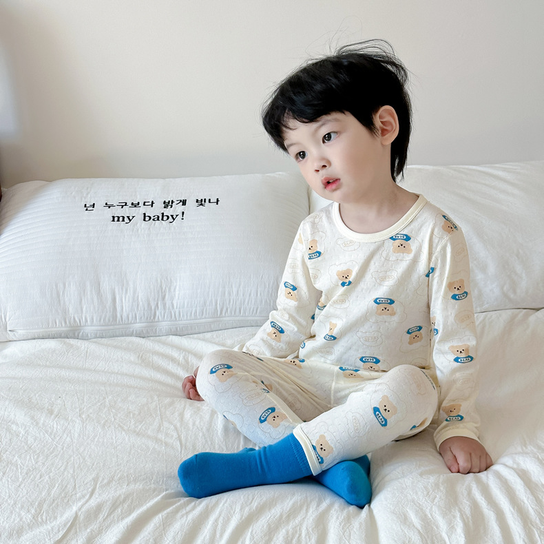 봄과 가을 어린이 홈 의류 세트 순수한면 얇은 호흡 긴 소매 속옷 소년 소녀 뼈없는 아기 잠옷스토어 가기