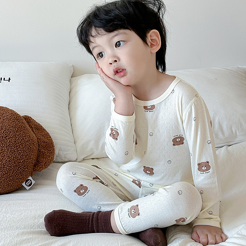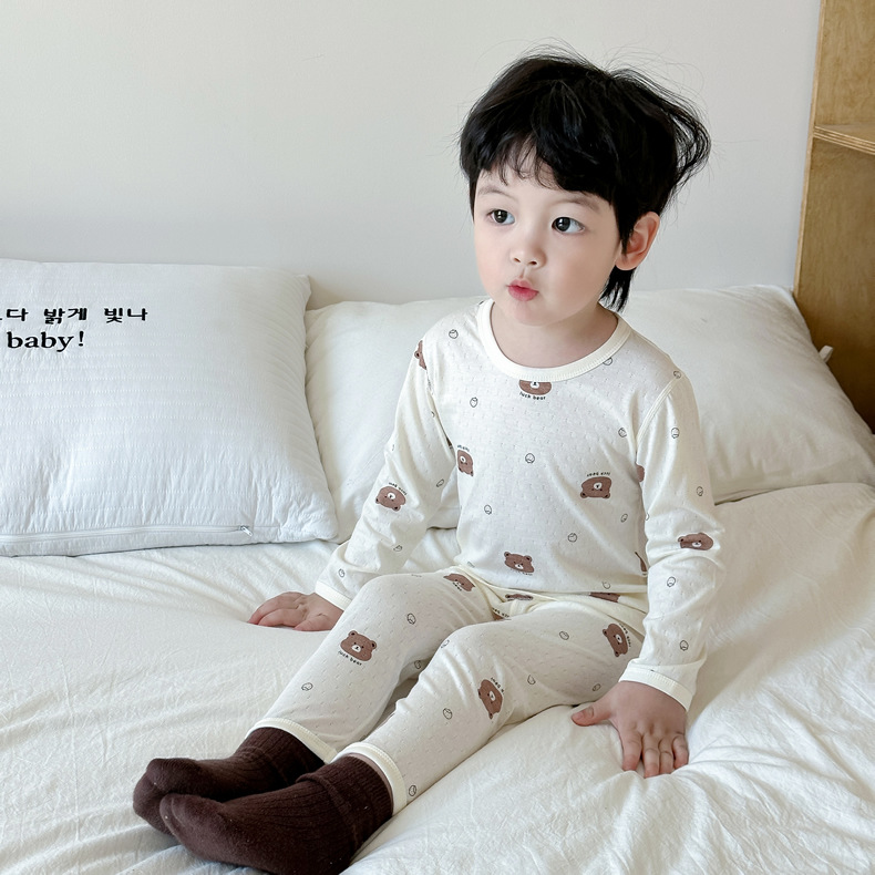 봄과 가을 어린이 홈 의류 세트 순수한면 얇은 호흡 긴 소매 속옷 소년 소녀 뼈없는 아기 잠옷