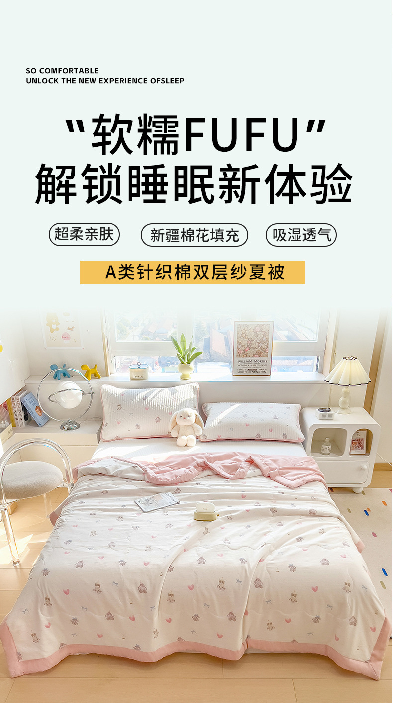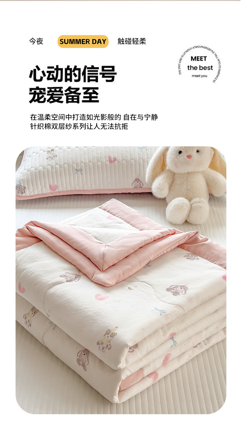 봄/여름 2025 클래스 모성 및 유아 등급 더블 레이어 원사 니트 코튼 여름 이불 여름 이불 여름 쿨 퀼트 에어컨 이불 얇은 이불 기계 세척 가능스토어 가기