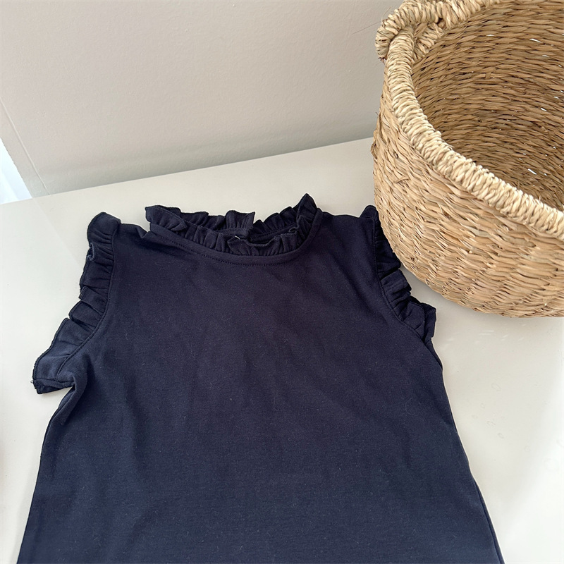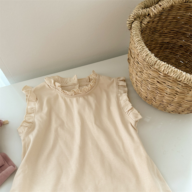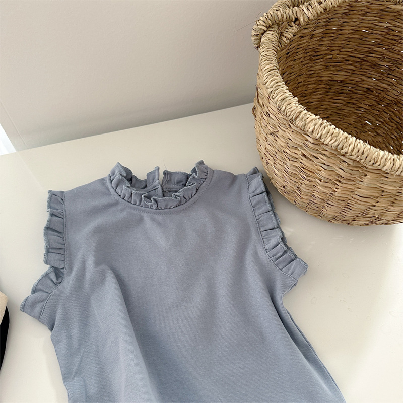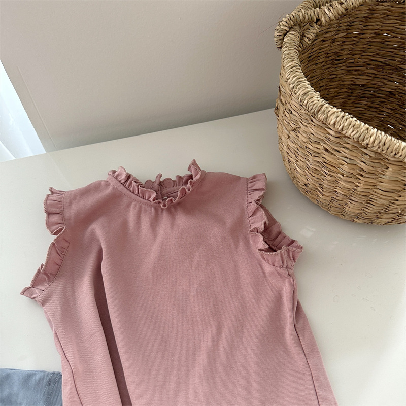 Xi Fan 25 여름 새로운 어린이 귀 목걸이 민소매 달콤한 베이스 셔츠 소녀 아기 니트 단색 탑