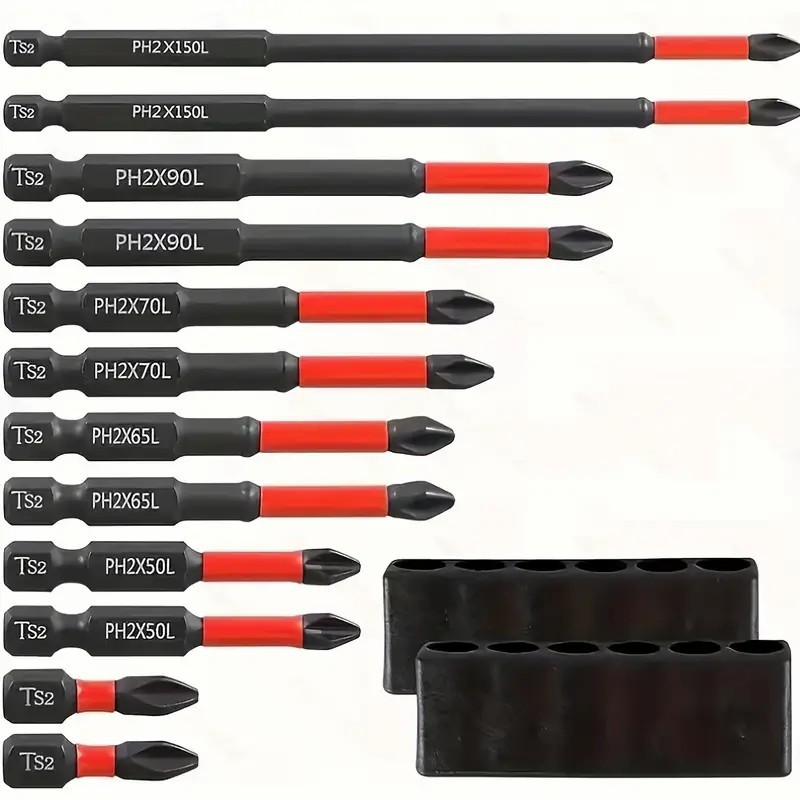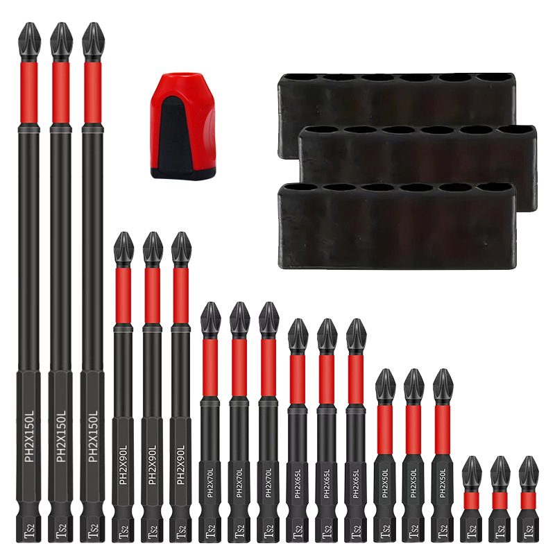• 12PCS 빨간색 고무 슬리브 미끄럼 방지 비트 + 2PCS 자화 장치 + 베이스 [192g]