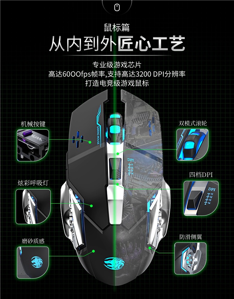 • 실버 블랙 아이스 블루 라이트 핸드 레스트 버전 [3종 세트 업그레이드 버전]_매크로 마우스_헤드폰