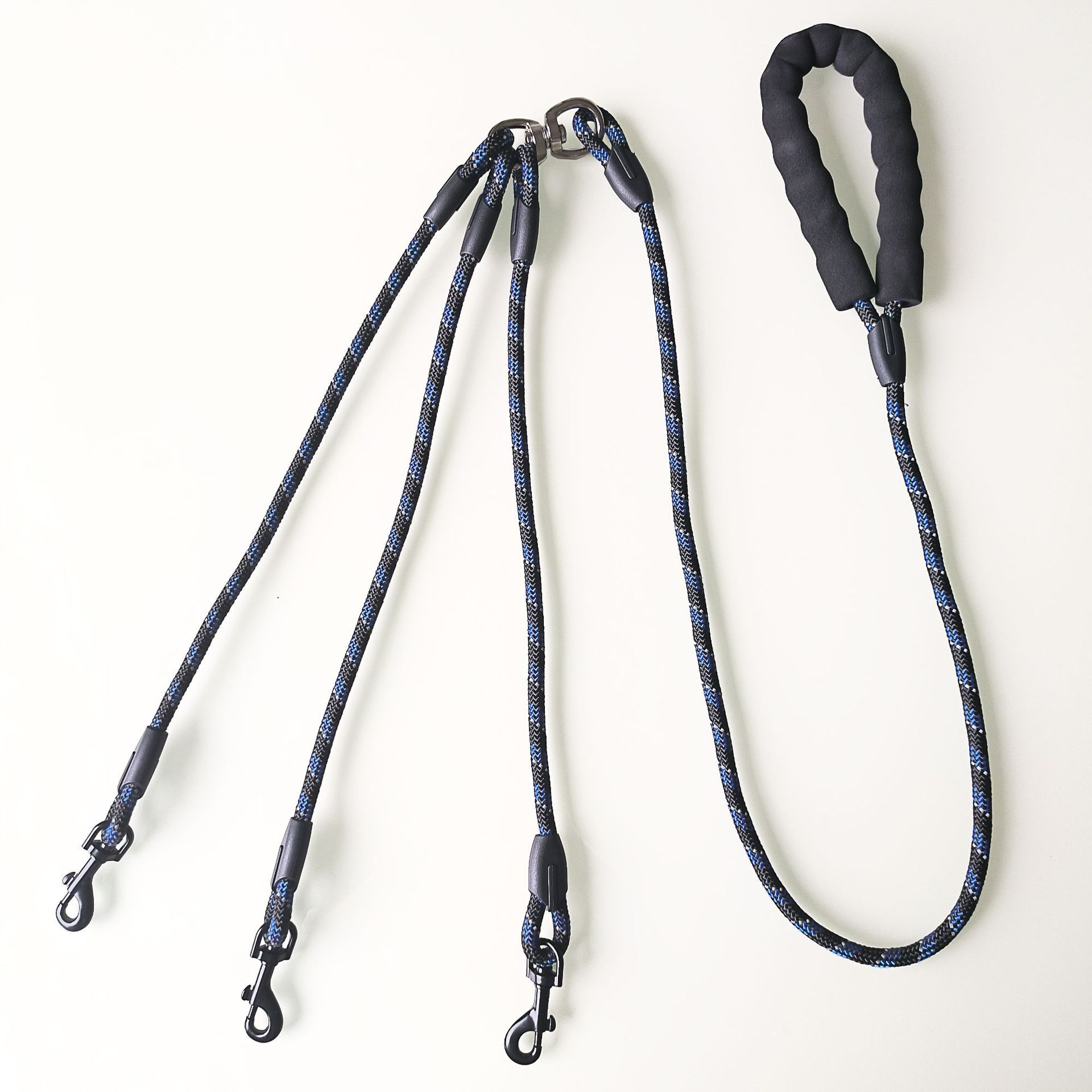 • 파란색과 검정색 반사 실크 핸들 3머리 로프