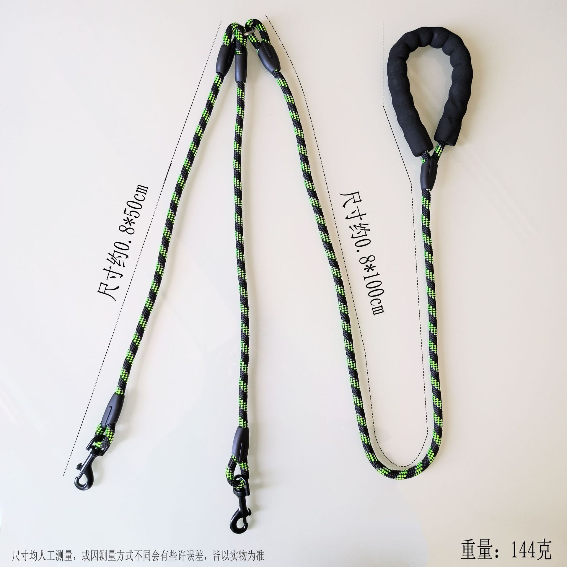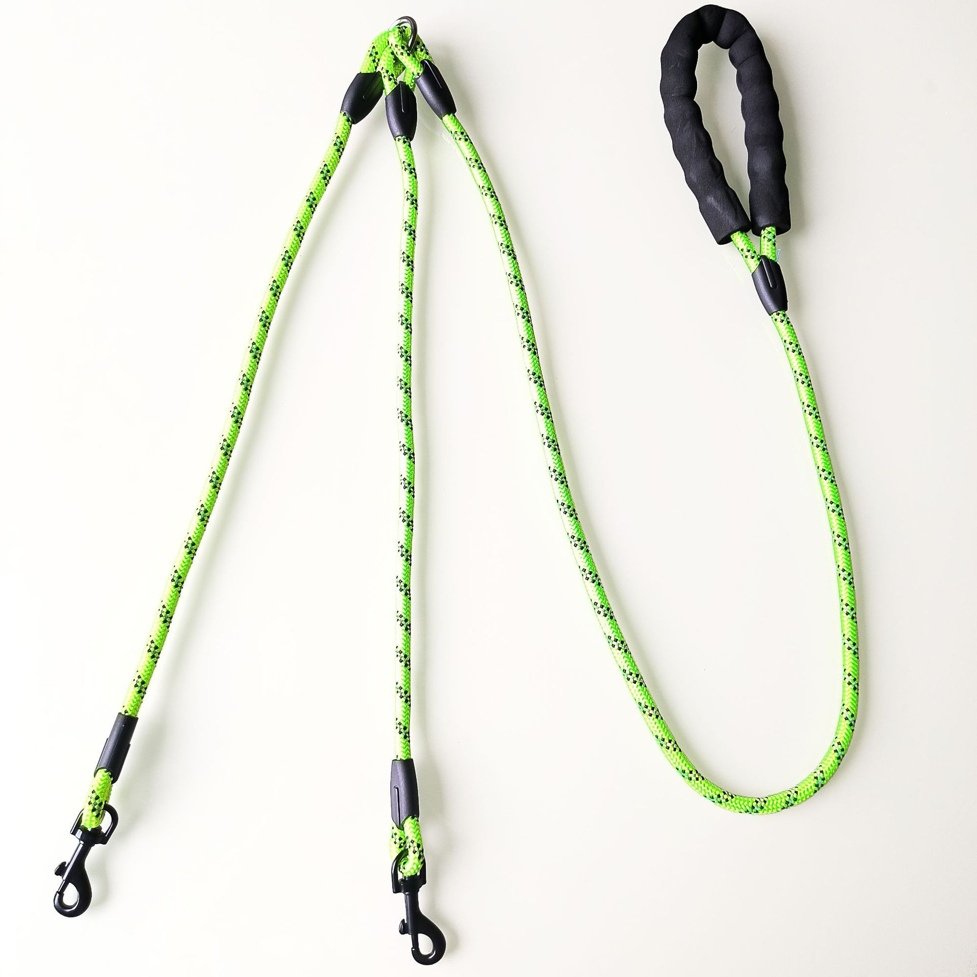 • 녹색 및 검정색 반사 실크 핸들 양단 로프