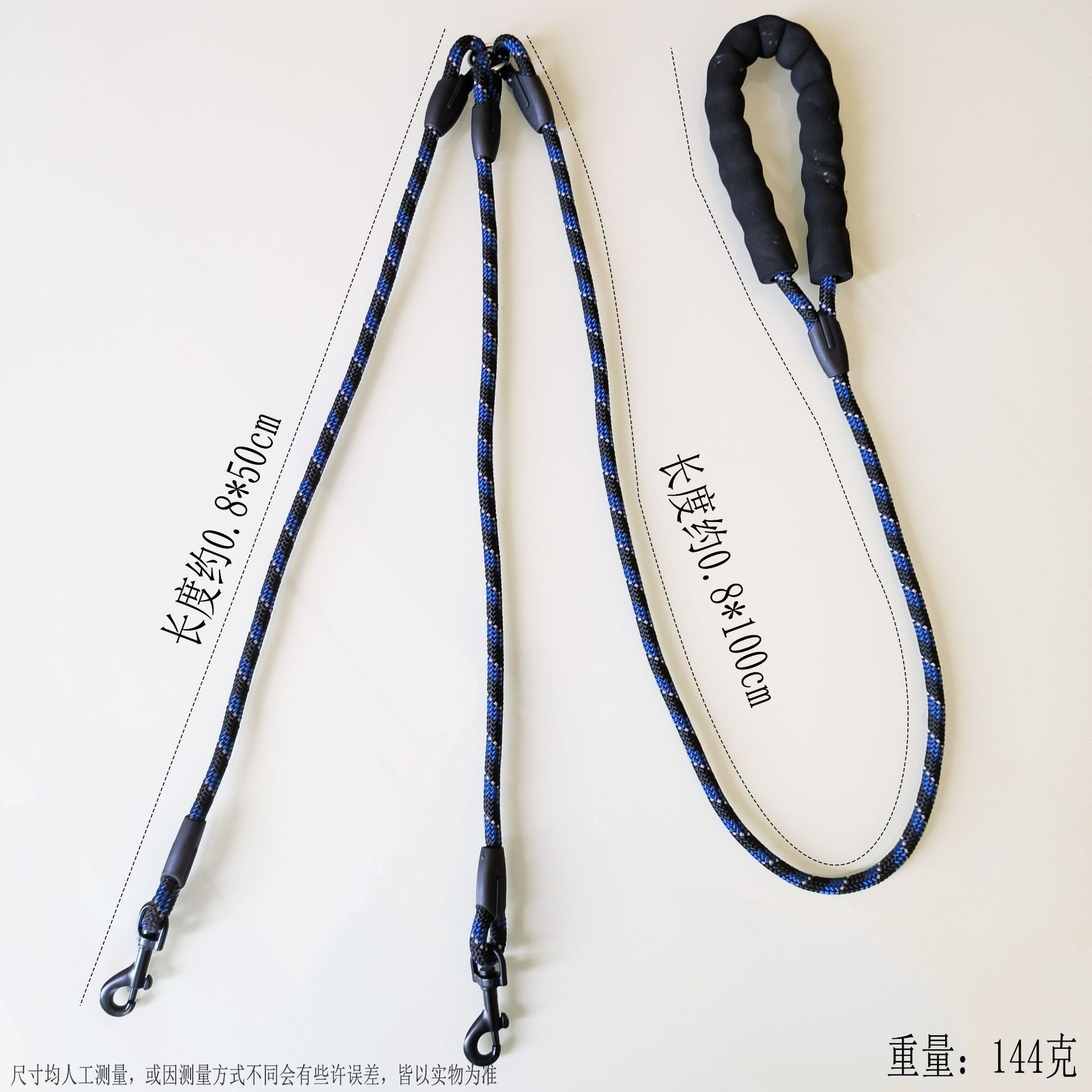 • 파란색과 검정색 반사 실크 핸들 양단 로프