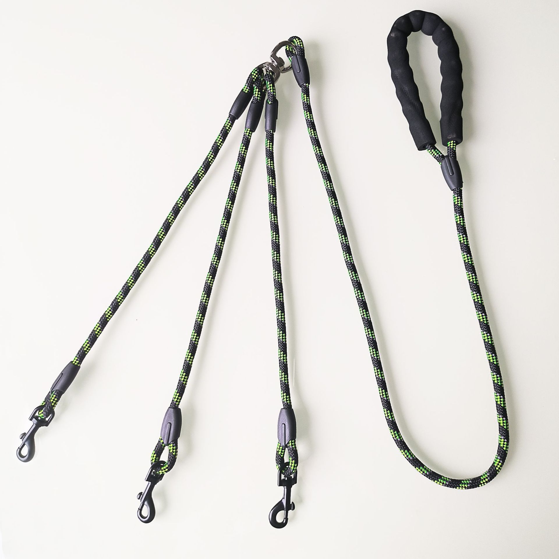 • 녹색 및 검정색 반사 실크 핸들 3머리 로프