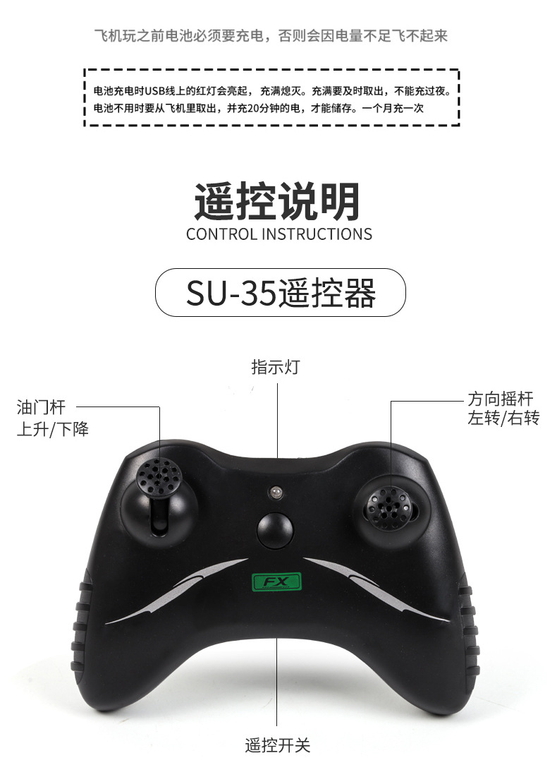 产品清单:飞机*1 遥控*1 USB充电线*1 说明书*1